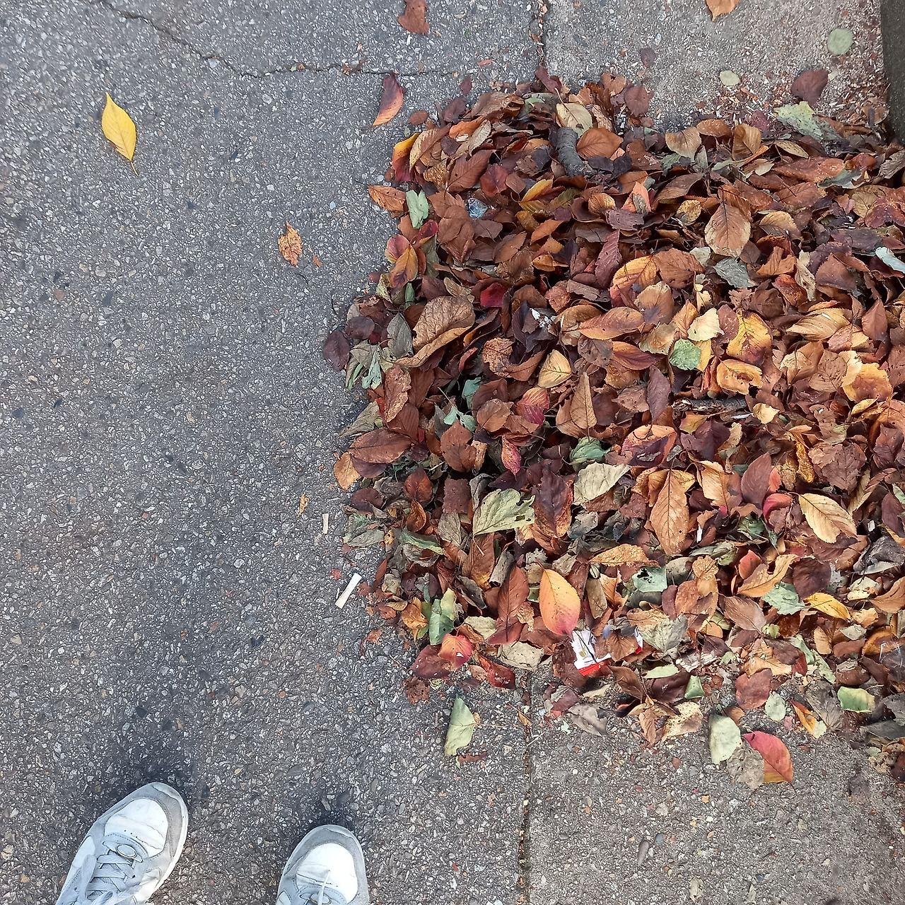 느티나무 아래에 주황색과 갈색으로 물든 낙엽을 만났다. 그리고 더 반가운 건 쓸어 모은 낙엽더미였다. 고마운 손으로 쓸어 모은 낙엽을 잠시 남겨두었다. 가을 단풍 구경엔 이런 장면도 놓치기가 아쉽다. 그냥 지나치지 못하고 사진으로 담아 두게 된다. 매일 찍던 꽃 사진을 대신할 수 있기 때문이다. 오늘 만난 낙엽더미는 네모 모양이었다. 쓸어 모은 낙엽이 동그라미도 세모도 된다. 가끔은 볼록 솟은 작은 산 모양을 만나기도 하는데, 어떤 모양이어도 낙엽더미는 반갑기만 하다.