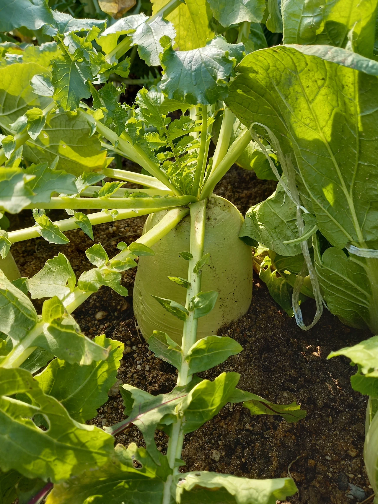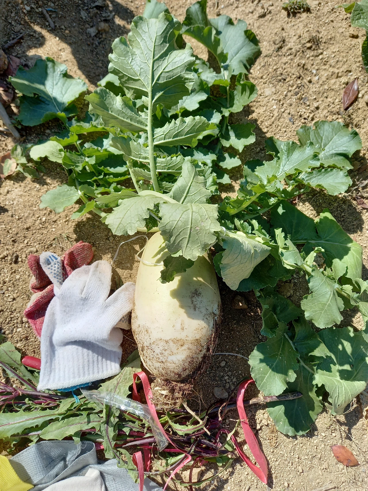 그래도 마음을 먹었으니, 작든 크든 하나 먹어봐야겠다 싶었다. 한 손으로 무청 줄기를 모아서 잡고, 땅 위로 올라온 무를 살짝 당겼다. 꿈쩍하지 않아서 좀 더 힘을 주었지만 쉽게 뽑히지 않았다. 주변에 흙을 조금씩 파내고 힘껏 당겼더니 흩어진 흙냄새가 물씬 나며 땅속에서 나왔다고 믿어지지 않을 만큼 새하얀 무가 나왔다.
