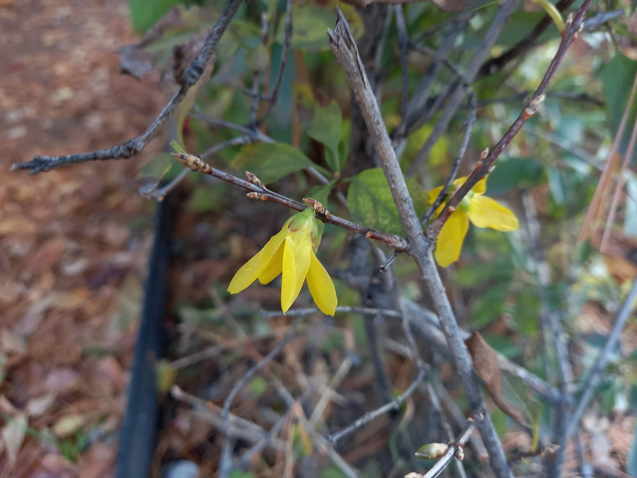 "어머, 봄인 줄 깜빡 속을 뻔했네."라며 남편이 껄껄 웃었다. 정말로 겨울이 떠나고 꽃피는 봄이 온 것 같았다. 공원 울타리로 심어진 개나리가 노랗게 꽃이 핀 것이다. 빙 둘러진 담장마다 개나리가 한두 송이씩 피어 있었다.
