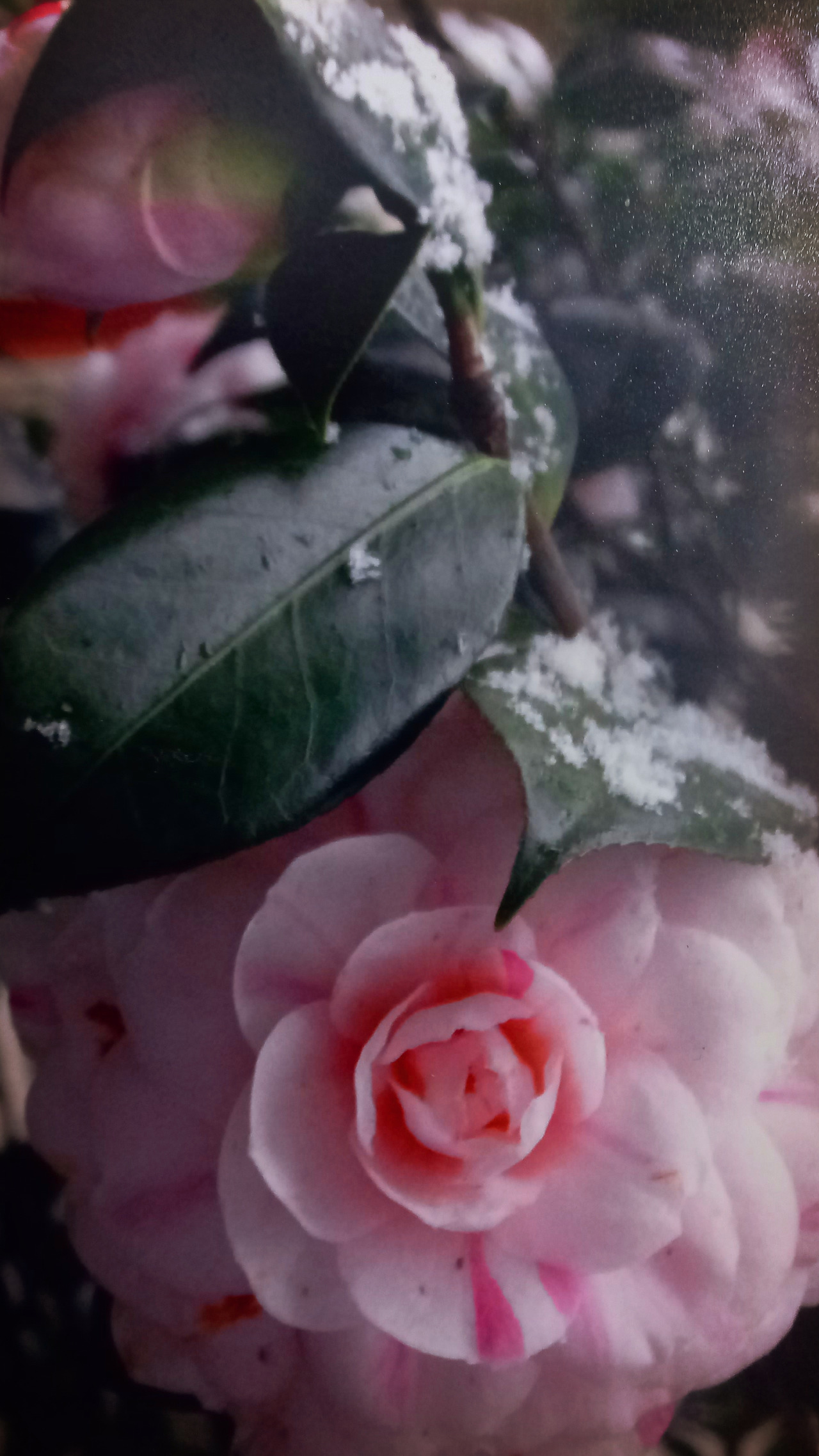 함박눈이었다. 하얗게 날리는 눈에 몸을 맡기고 싶었지만 나갈 수 없었다. 체념으로 갇힌 채 문 너머 눈이 쌓여가는 것이 보고 있었다. 마당 중앙의 감나무는 겨울 휴가를 즐기고 있었지만, 동백나무겐 완벽고 아름다운 겨울이었다. 아버지 정원에 가장 늦게 피는 꽃나무로 붉은색과 분홍색 동백을 마주 보게 심어 두셨다. 단하고 매끄러운 록잎 틈 대롱대롱 꽃송이가 잔뜩 달렸다. 히 겹꽃인 분홍 동백은 어느 명품 브랜드의 코사지를 떠올리게 하며 카멜리아라고 영어식으로 불러주는 것이 더 어울렸다. 함박눈이 펑펑 내리던 날에 꽃은 굴을 손으로 가린 듯 나뭇잎으로 살짝 가린 채 눈송이처럼 함박웃음을 지었다. 연분홍빛의 동백은 봄날 벚꽃처럼 여리고 수줍은 소녀처럼 아름다웠다.