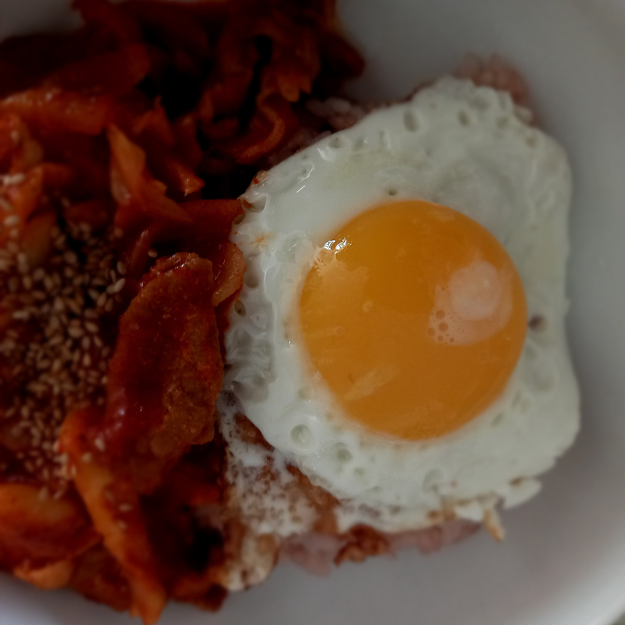 가족 수만큼 덮밥 위에 계란 프라이를 얹었고, 맛 품평을 기다리고 있었다. 그런데 또 똑같은 대답이다.