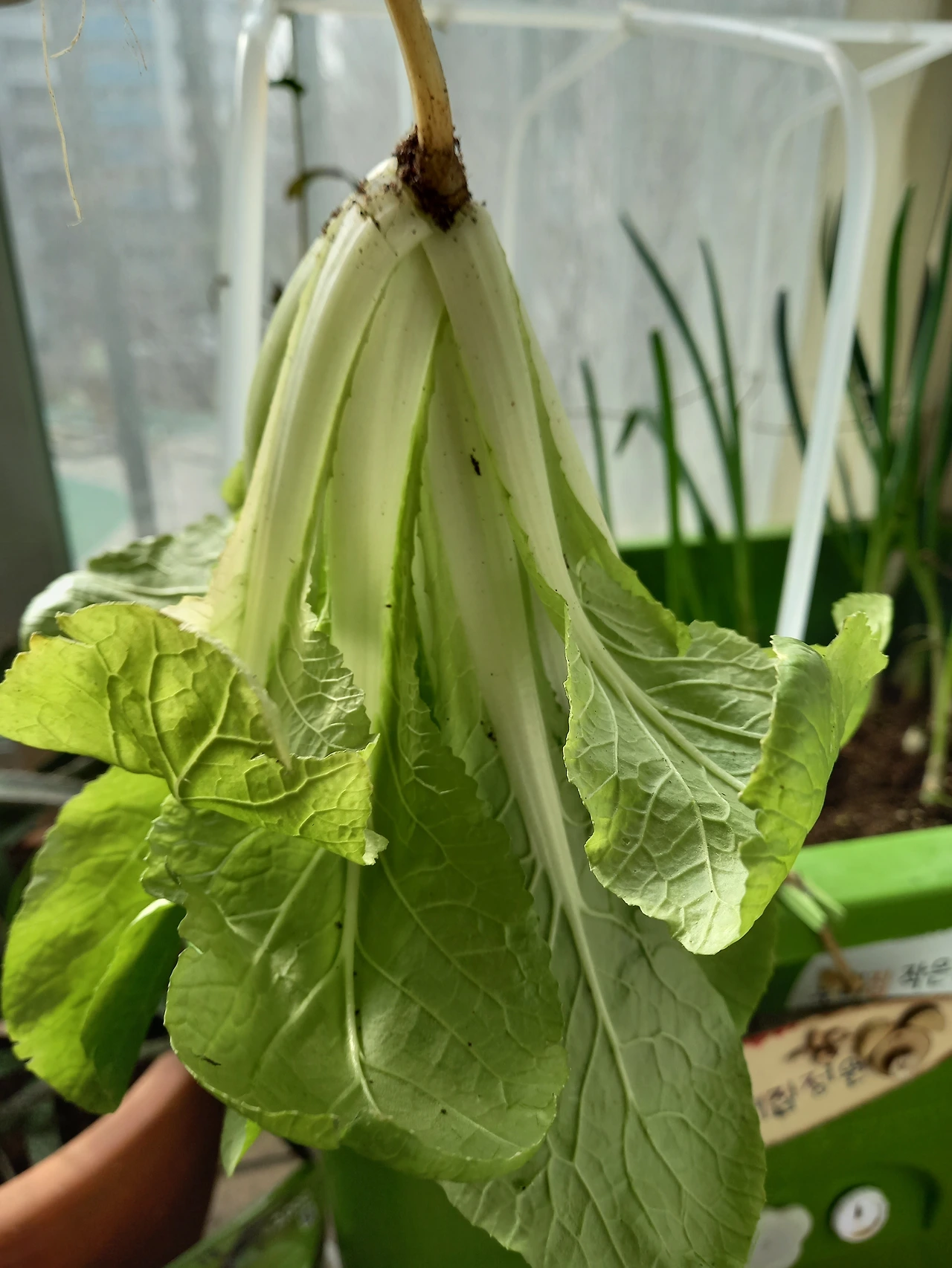 봄이 오기만을 기다린 수확이었다. 그 주인공은 작년 가을 텃밭 상자에 심은 얼갈이배추였다.