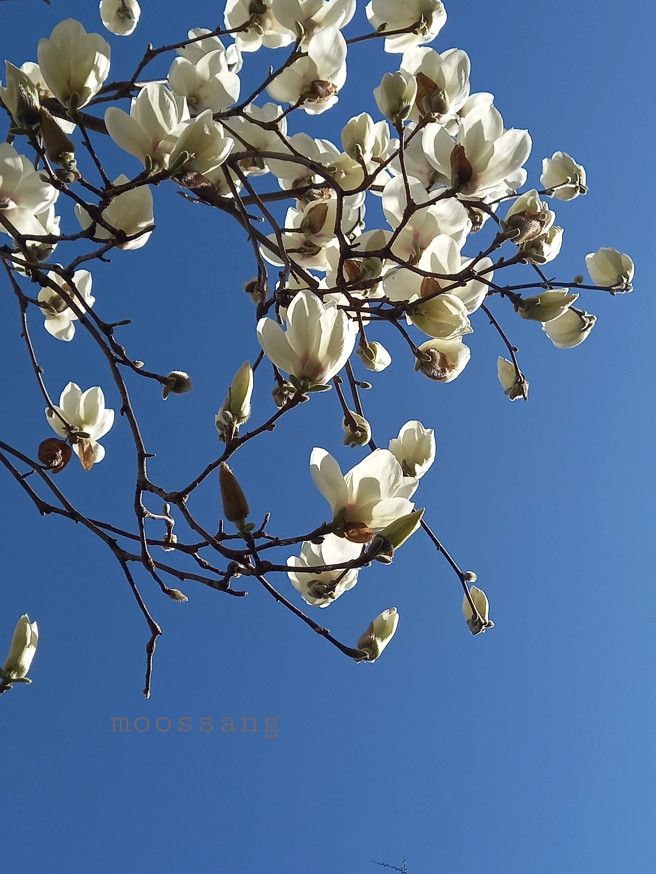 구름 없는 하늘에 새하얀 건 오직 백목련꽃뿐이었다. 그리고 난 백목련의 하얗고 깨끗한 마음을 닮으려고 또 애를 써본다.