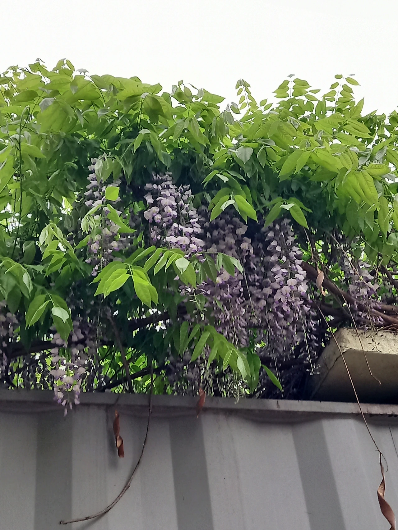 바닥에 뒹구는 꽃잎을 보기도 전에 향기가 먼저 났다. 고개를 들어 보니 연보라색 꽃송이가 떨어진 위로 긴 꼬리처럼 늘어뜨린 등나무 꽃이 보였다.