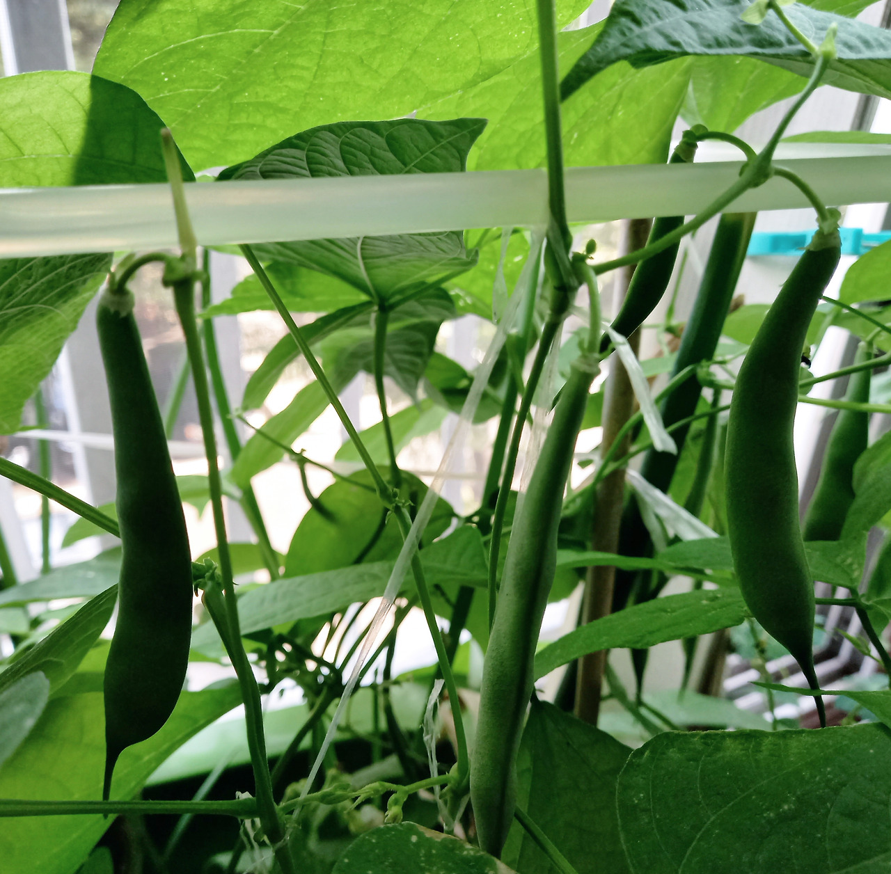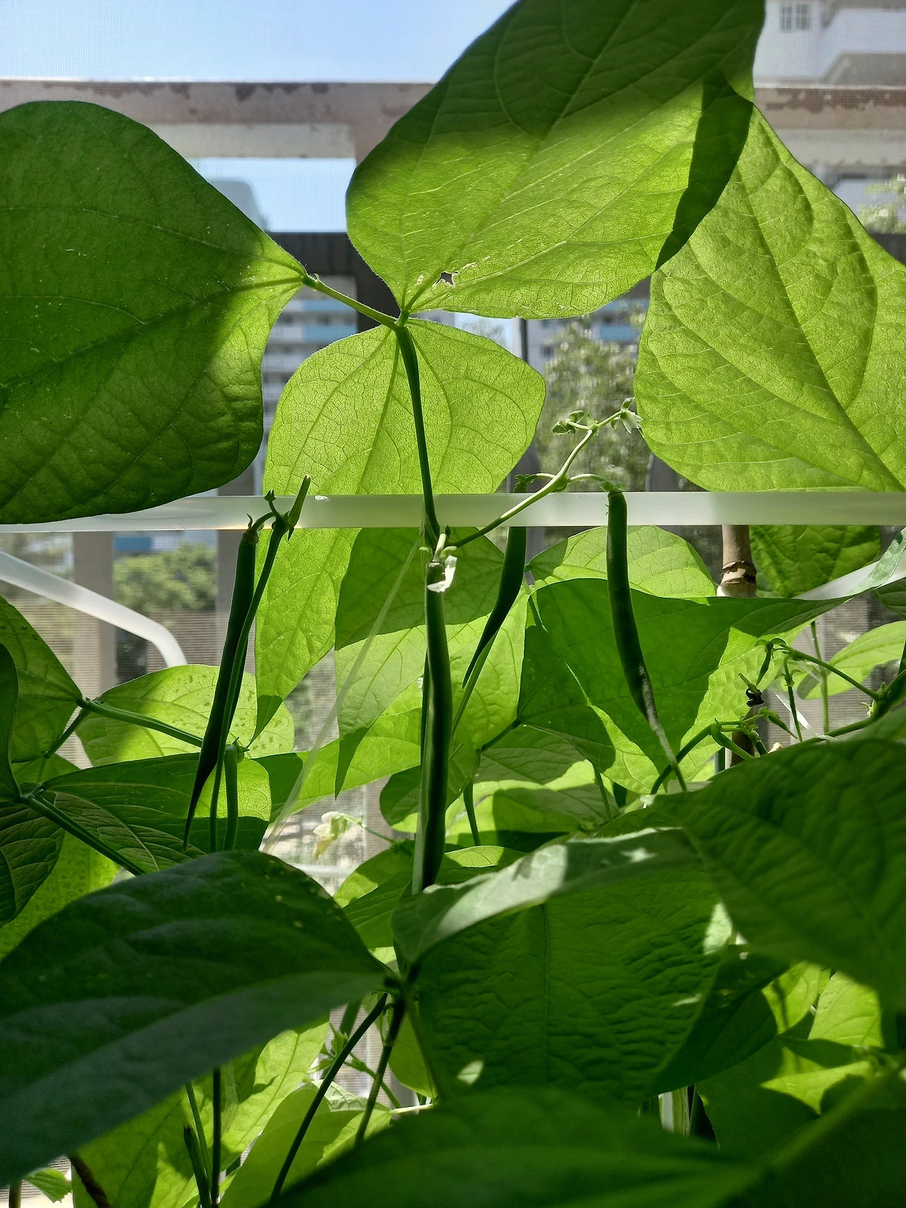 콩꽃은 아무리 봐도 신기해서 모양을 설명하기가 쉽지 않았다. 옆으로 보면 장화처럼 신발 모양이지만, 꽃이 피면 아래로 꽃잎이 펼쳐지며 하트 모양처럼 대칭이 되었다. 호랑이 꽃은 겉은 레몬색이고 속은 연보라 빛의 작고 귀여웠다. 꽃이 시들면 꽃받침에서 꼬투리가 길어지며 점점 커졌다. 하루 만에 시드는 꽃이 아쉽지만, 꽃이 지고 나면 씨앗을 여문 꼬투리가 기다려졌다. 콩 먹는 것은 그다지 좋아하지 않지만 아이들도 기대하는 눈치였다.