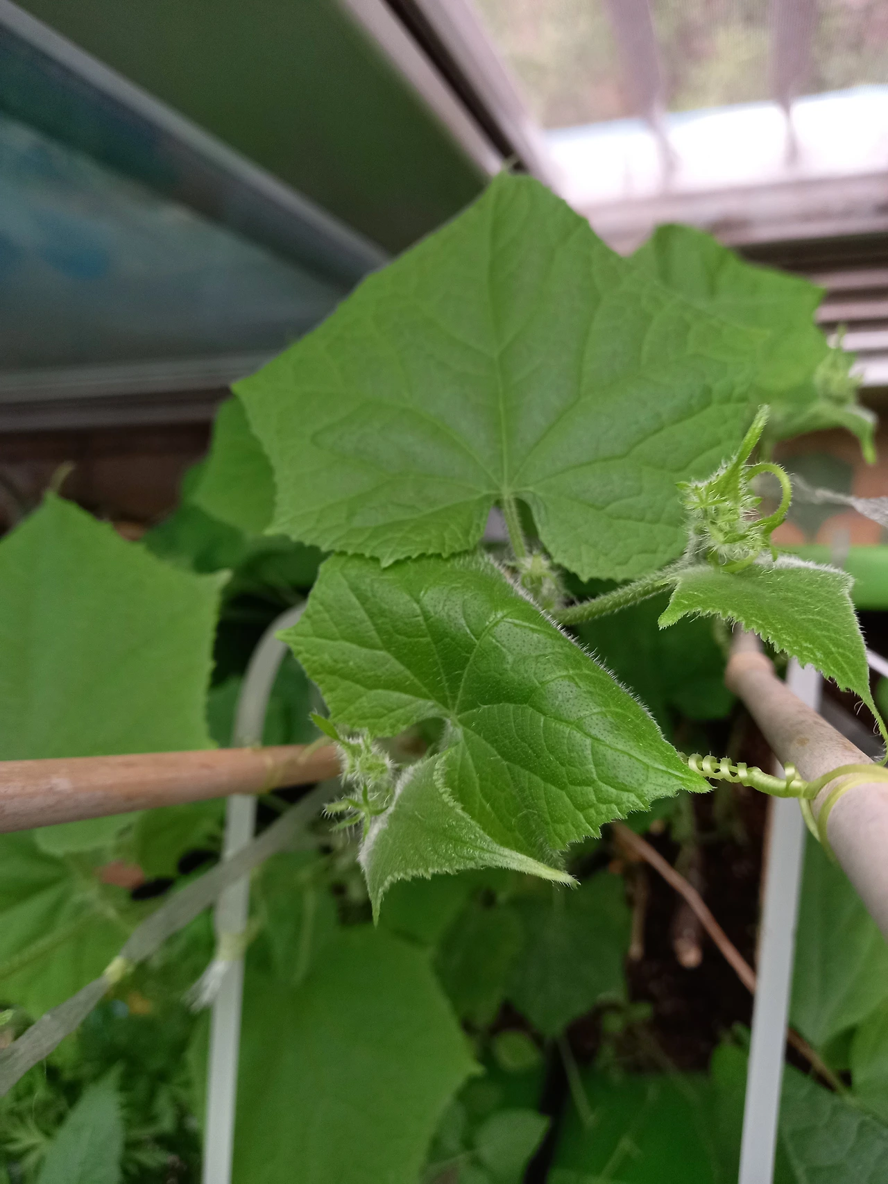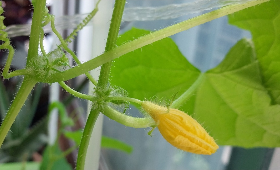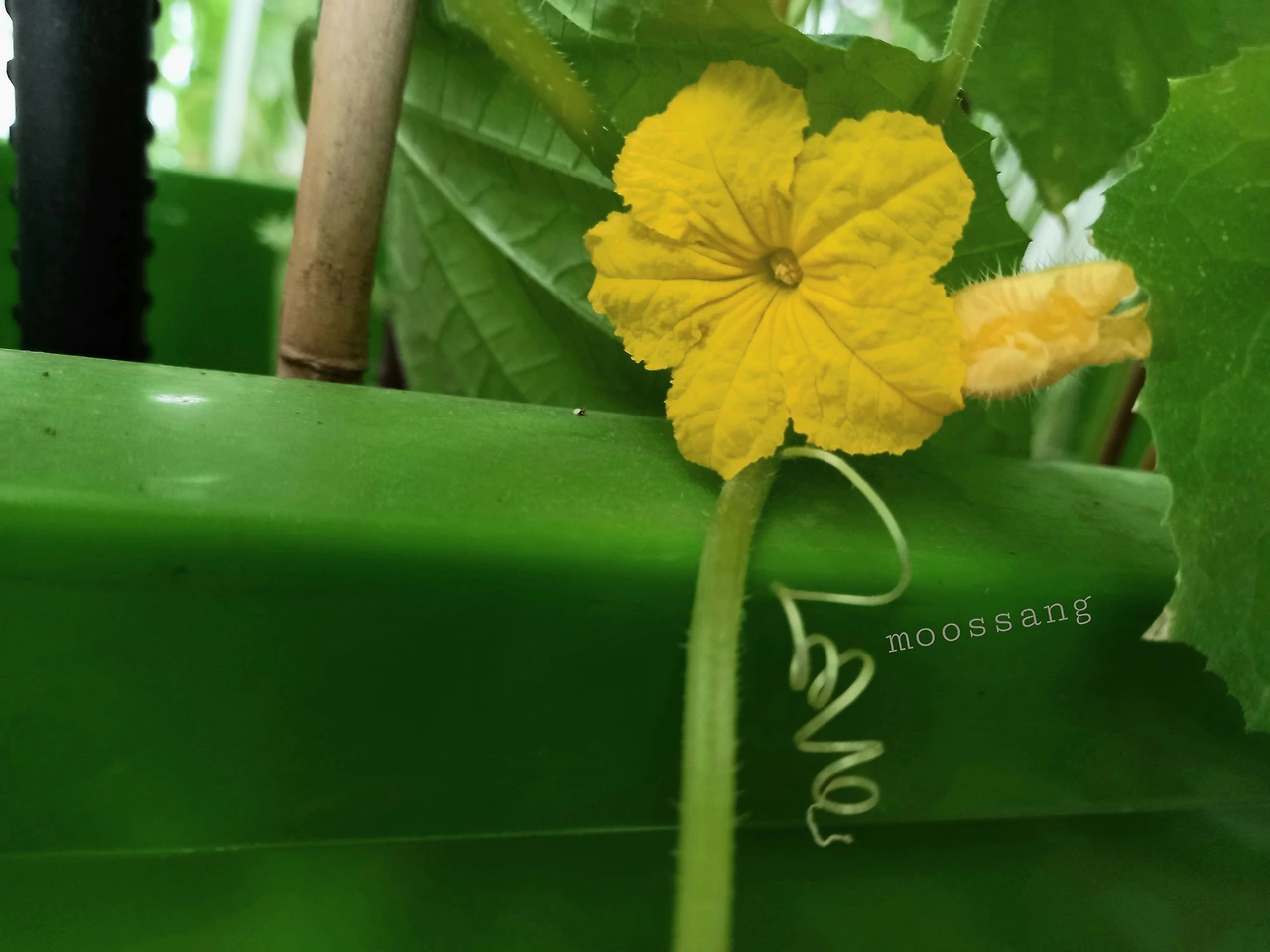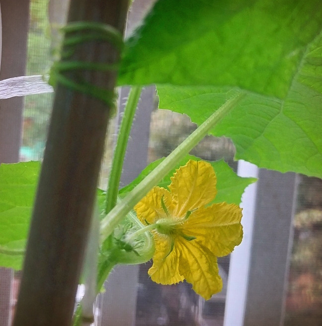 검색해보니 나처럼 집 안에서 오이를 키우는 분들이 제법 많았다. 오이는 생각보다 야무진 채소였다. 덩굴로 자라면 크게 신경 쓰지 않아도 열매가 달린다고 한다. 꽃이 모두 세 송이가 피었는데 모두 수꽃이었다. 열매가 달린 암꽃이 언제 필지 기다려봐야 한다. 순을 따주거나 인공수정을 하지 않아도 된다고 하니, 한여름 베란다의 뜨거운 기온을 잘 견뎌준다면 시원한 초록 커튼으로도 손색이 없을 듯싶다.