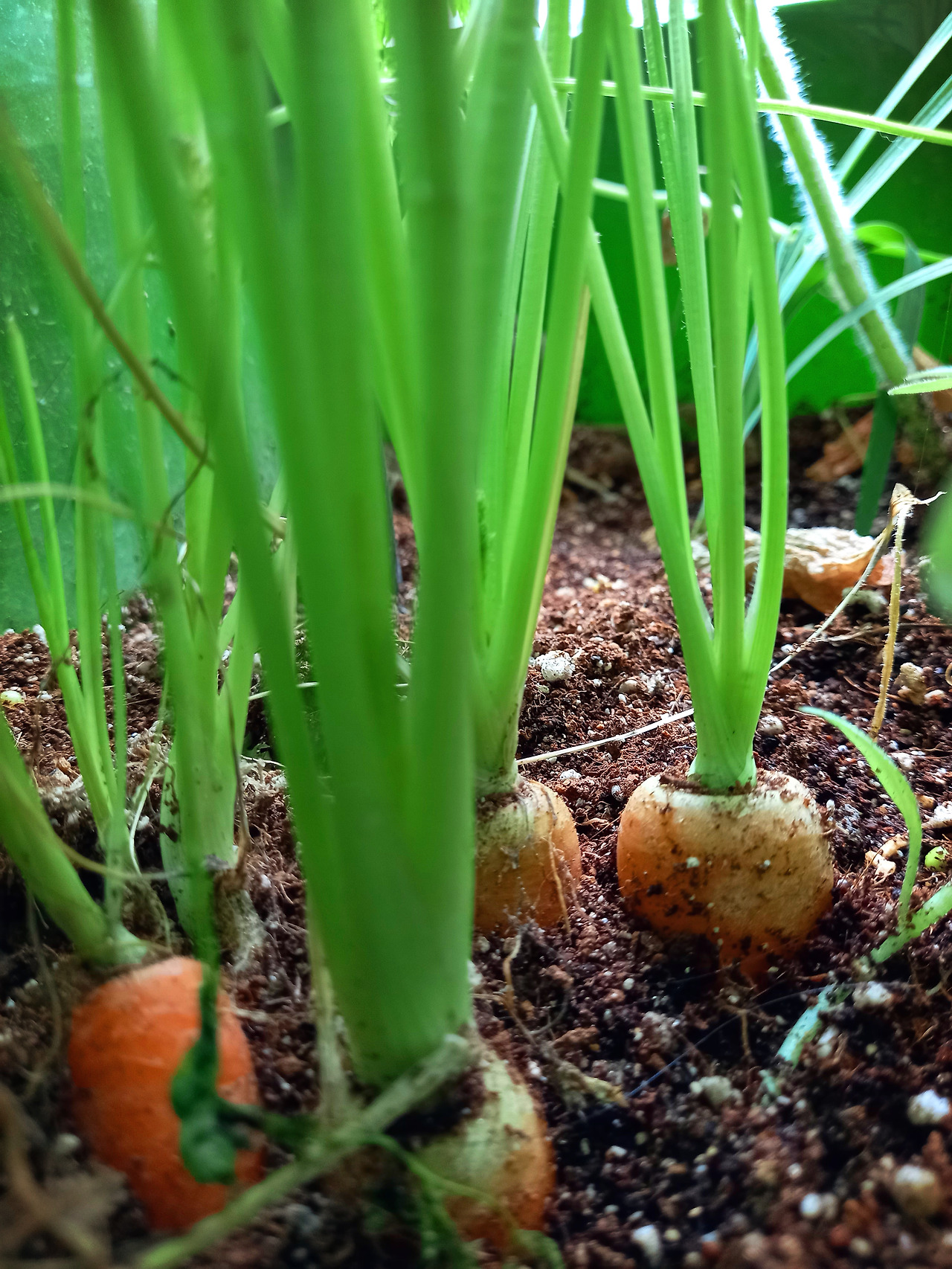 당근 잎과 뿌리 사이가 제법 갈라져 편편한 모양을 하고 있었다. 마트에서 파는 당근 크기는 아니라도 잘 크고 있다는 건 분명했다. 그리고 당근이 통통해지길 기다렸다.