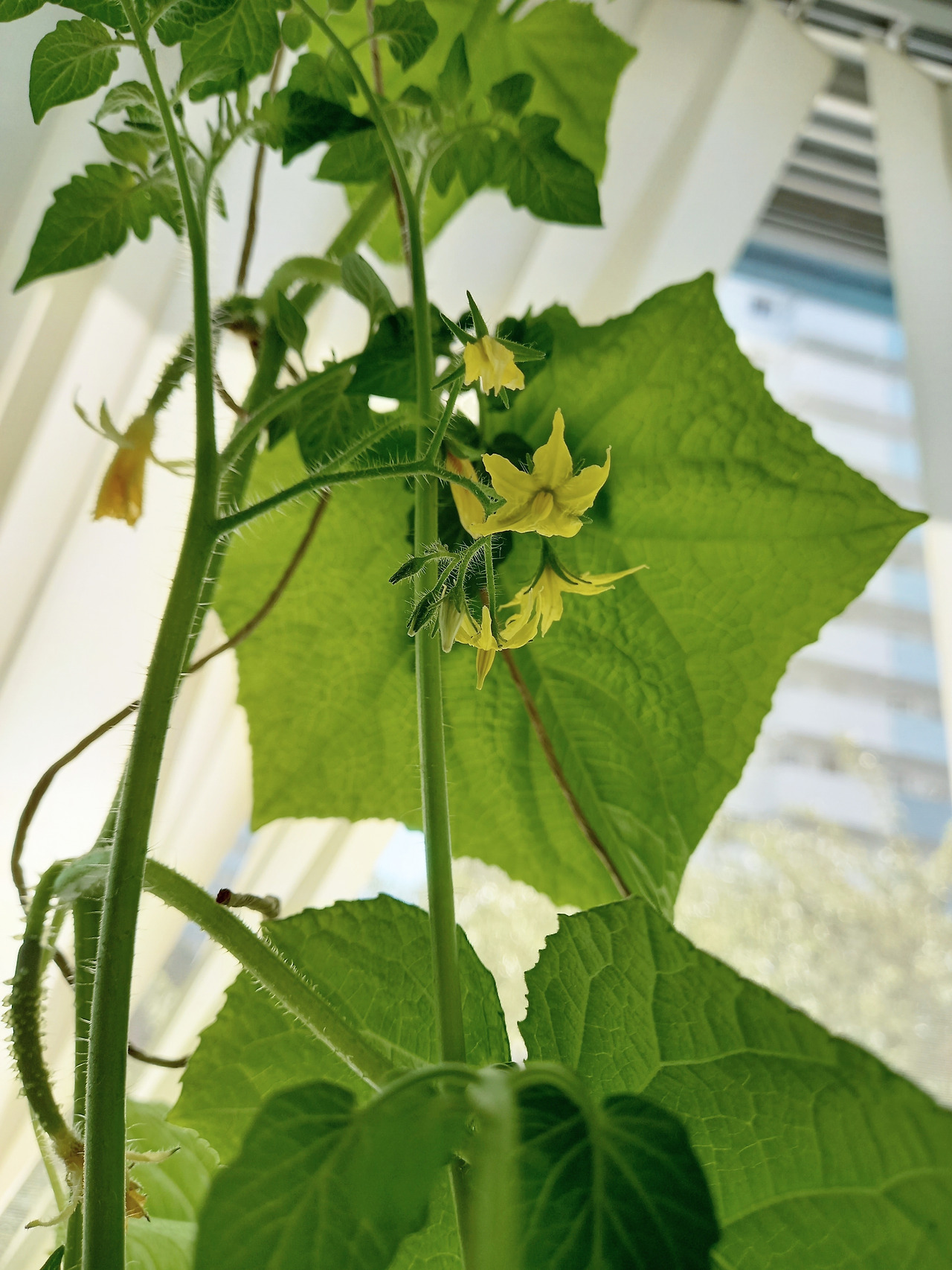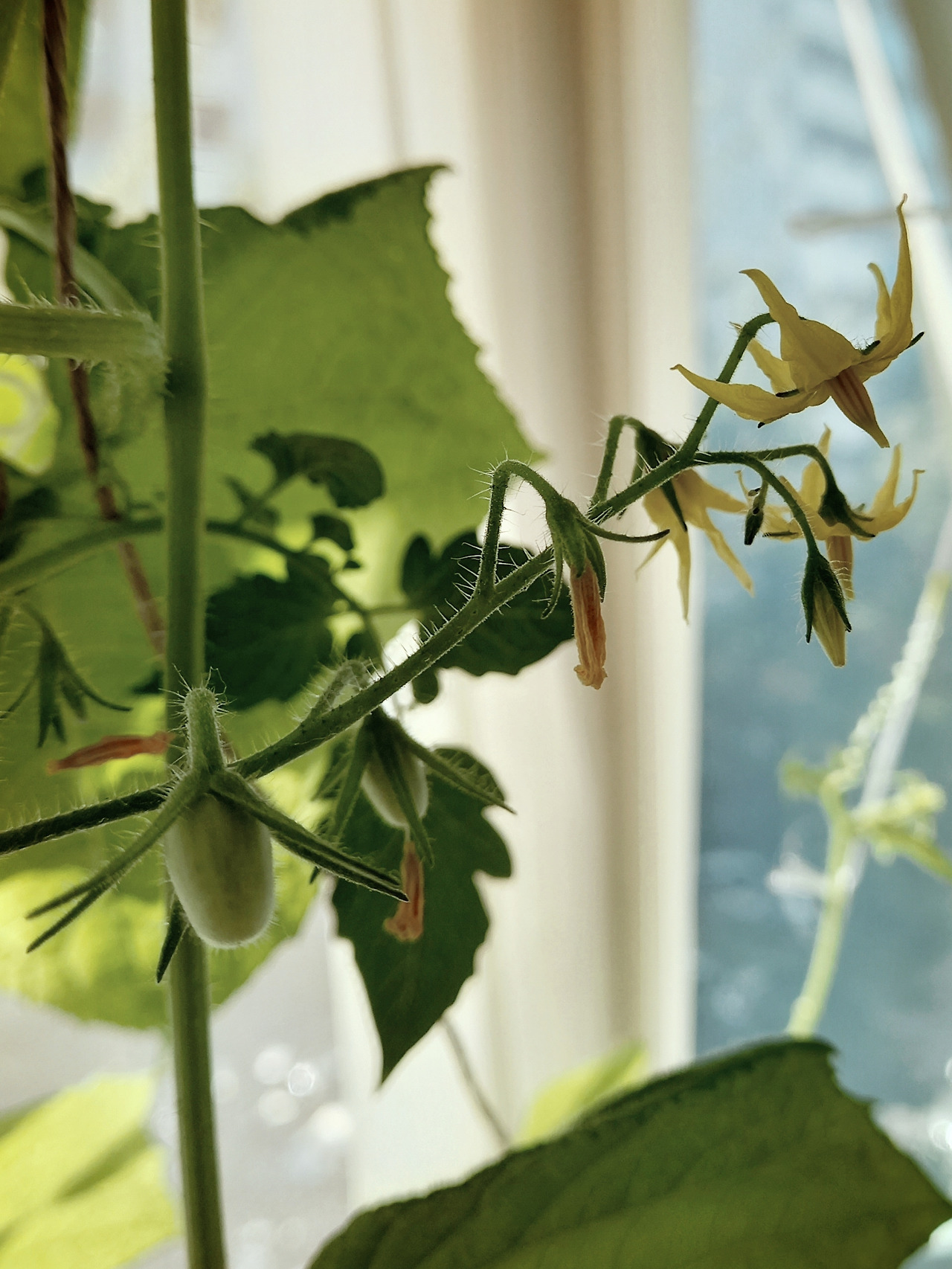 채소 꽃은 꽃송이가 피는데 까지 그리 오래 걸리지 않았다. 오히려 시든 꽃이 열매가 되기까지가 길고 긴 인내심이 필요했다. 활짝 핀 토마토 꽃은 꽃잎이 왕관 같지만 시들한 꽃잎은 생머리처럼 차분하게 아래로 늘어졌다. 모든 꽃송이가 토마토가 되면 좋을 텐데, 열매가 될지 그냥 사라질지 알 수는 없다.