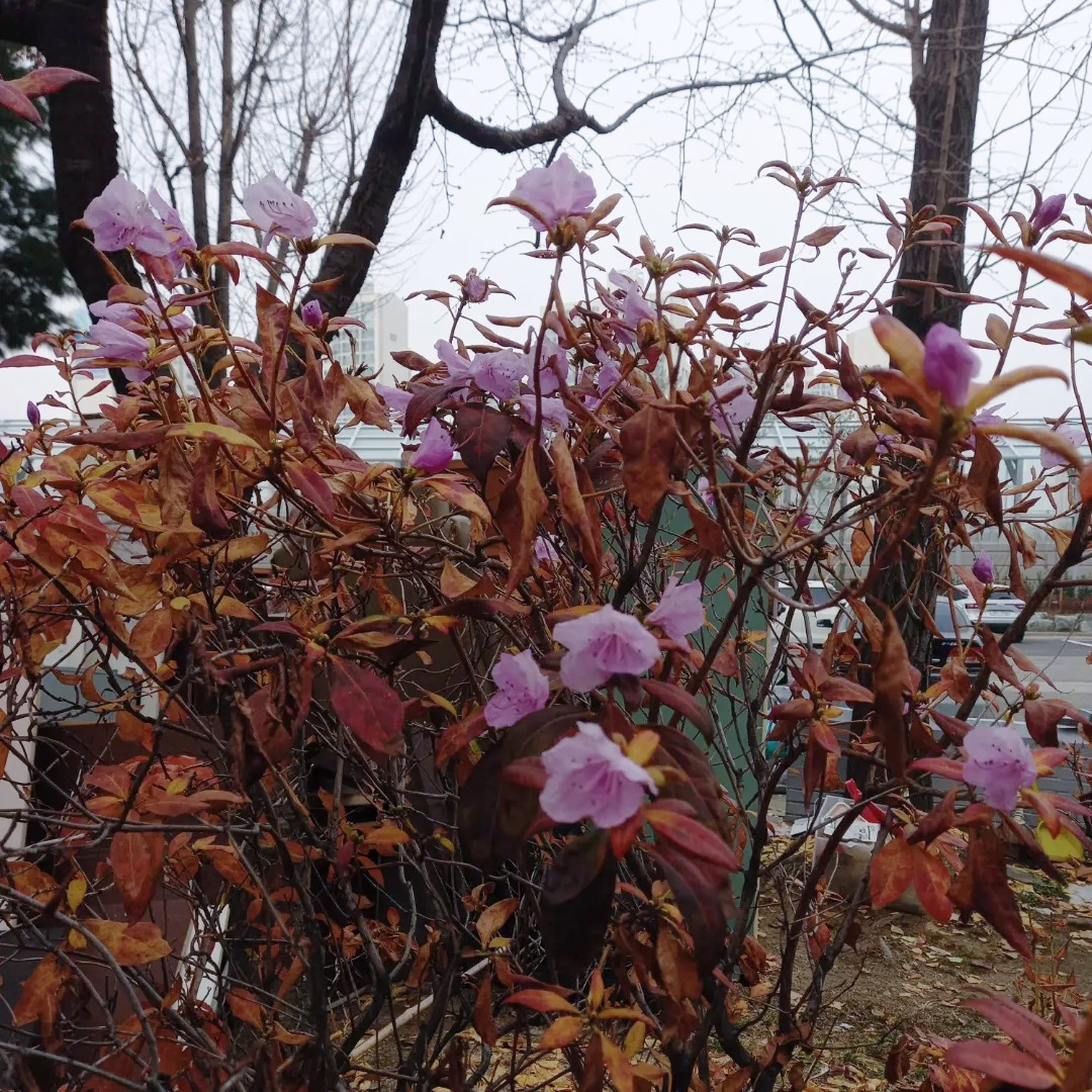 유난히 올해는 계절을 알리는 자연이 혼돈에 잠긴 듯했다. 11월이지만 철쭉이 어쩌다 한송이가 아니라 나무마다 보였고, 명자나무에 꽃들도 봄처럼 풍성하게 꽃을 피웠다. 금방 사라질 듯했던 토끼풀들도 희고 둥근 꽃을 피우며 봄날 풍경을 떠오르게 했다. 개나리꽃은 한송이 지면 또 새꽃이 피어 개나리 담장에 노란 점들이 멈추지 않는다. 무슨 일이 벌어지고 있는 것일까?