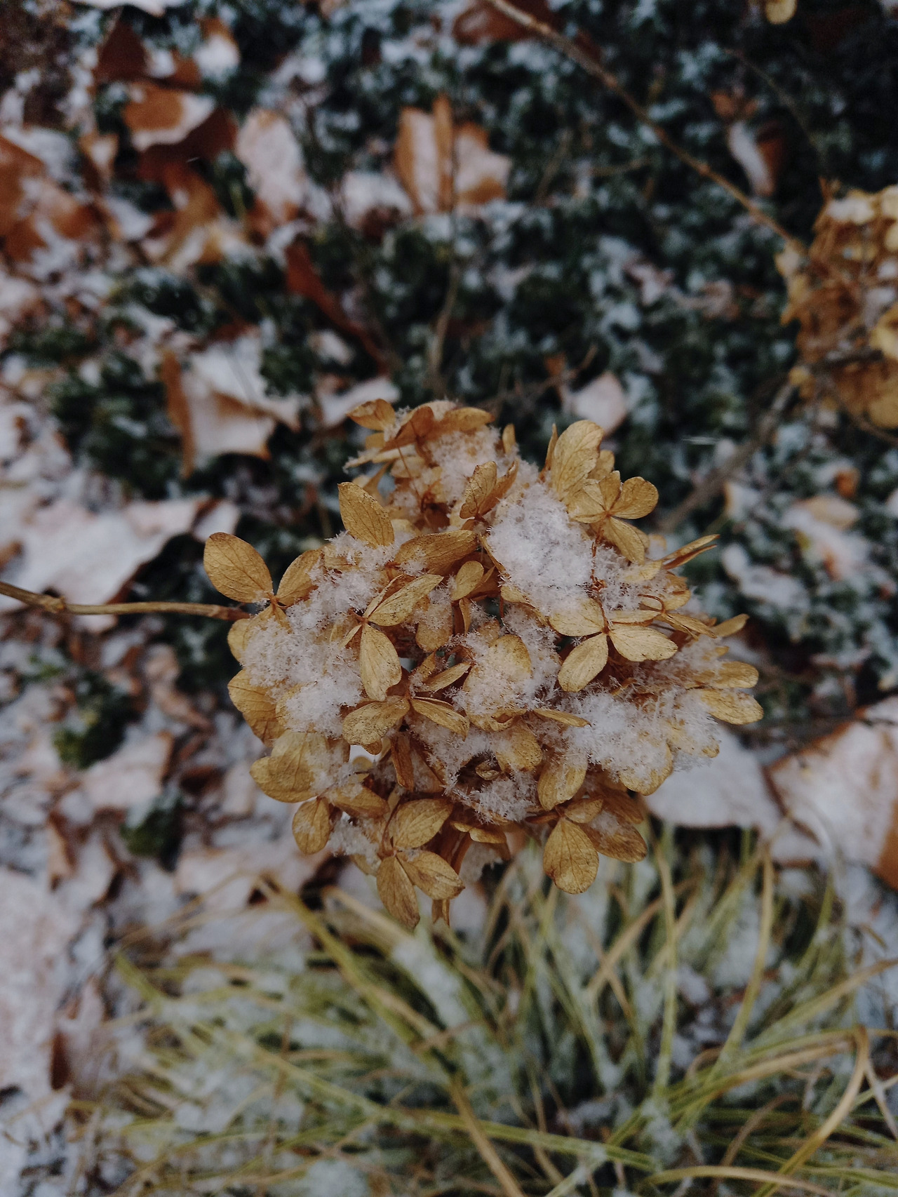 반쯤 눈이 덮인 곡식 밭에서 건조하지만 깨끗하게 씻겨나간 블루 컬의 빈 컵을 발견했다. 얼마 전까지만 해도 섬세한 푸른 꽃이 피었던 자리에 겨울은 이 바싹 마른 컵만 남겨두었다. 눈 위에 서 있는 꽃의 기념품