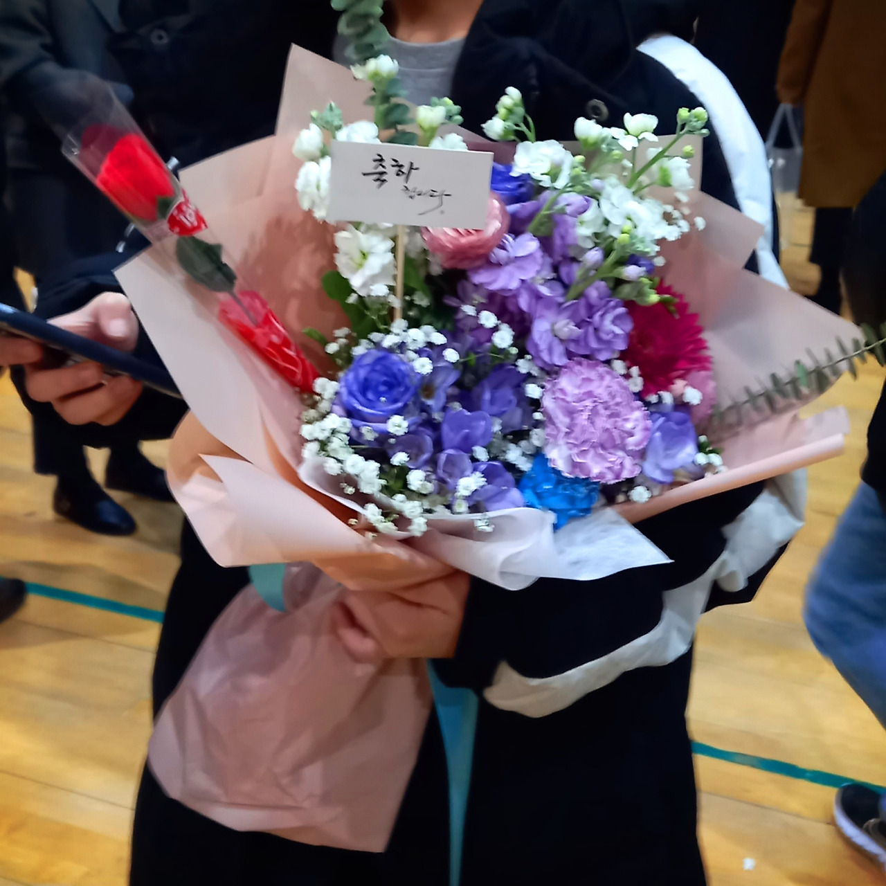 준비한 꽃다발을 들고 출발했는데, 졸업식 준비로 먼저 학교에 간 아이에게 전화가 왔다. 어디까지 왔냐고 묻는데, 우리가 늦을 까봐 걱정하는 목소리였다.