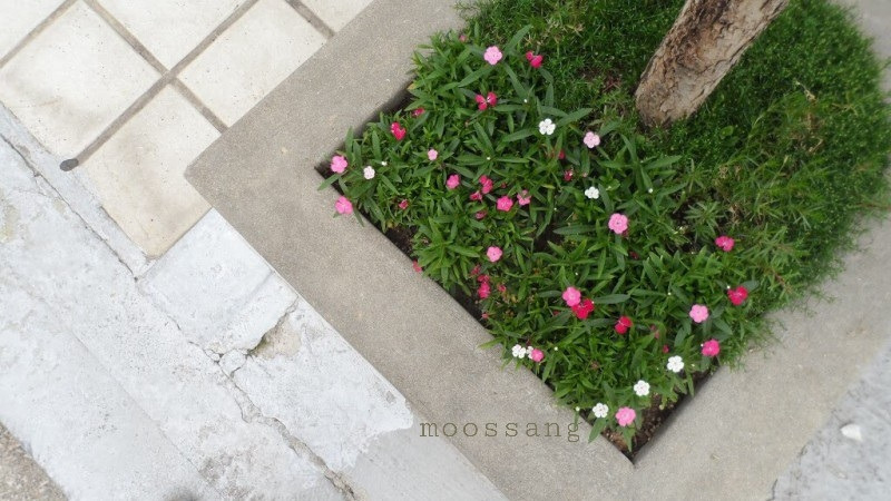 동네 산책을 하며 길가에 핀 꽃을 구경하고 있었다. 화단이 있는 집을 모두 외우고 있었지만, 처음 보는 건물이 있었다. 새로 지은 빌라는 입구에 감나무가 심어져 있었고, 나무 주변을 시멘트로 반듯하게 둘러져 있었다. 그 안에는 작은 패랭이꽃들이 피어 있었다. 나는 화단을 보는 순간 한눈에 반해버렸다.