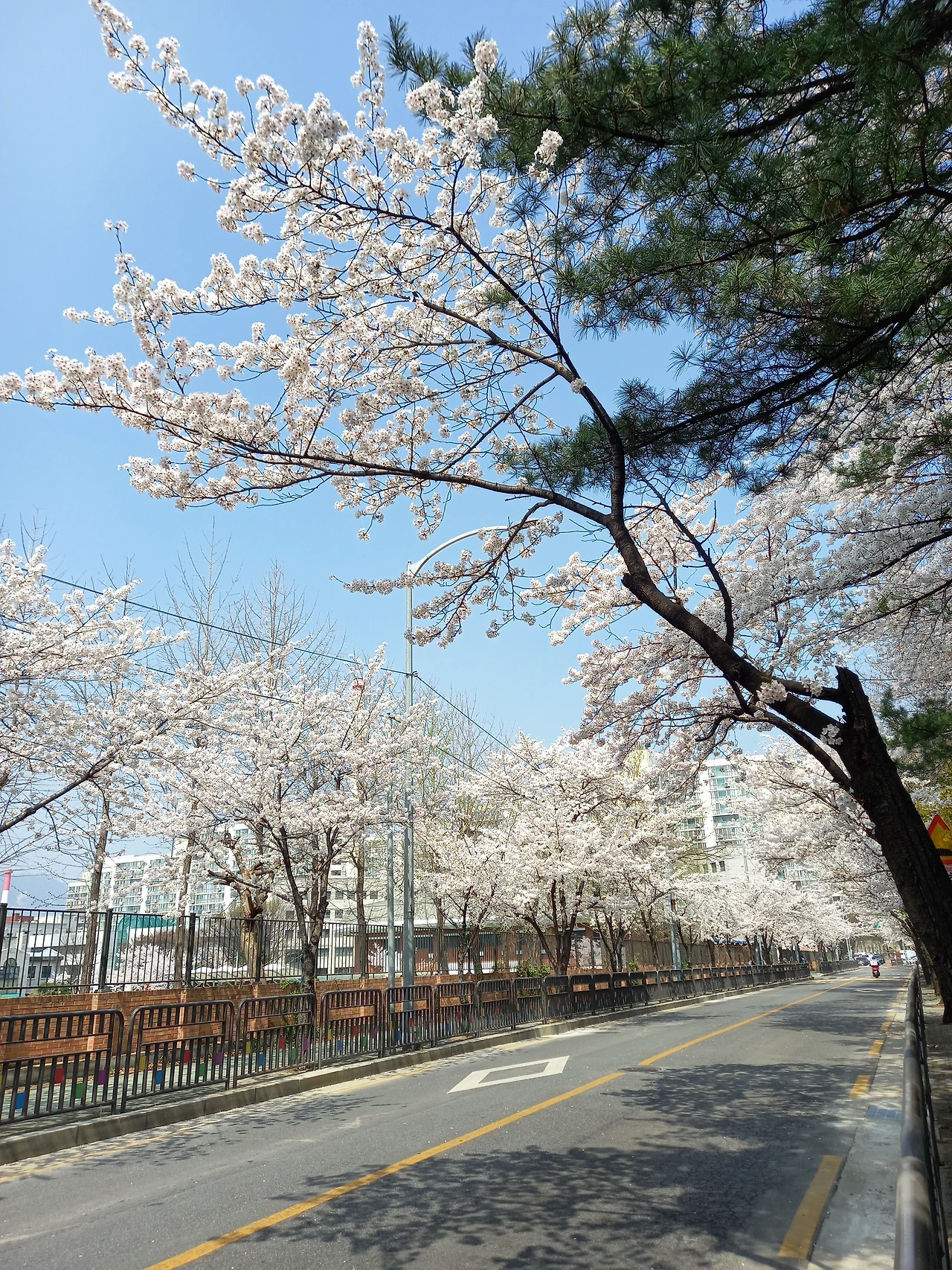 앞에서 걸어오던 할머니가 만개한 벚꽃을 보더니 "멀리 갈 것도 없네."라며 사진을 찍었다. 그러고 보니 동네마다 벚꽃나무는 꼭 있다. 태어나 지금까지 살던 집도 근처에 늘 벚꽃이 피었다. 집앞은 아니어도 벚꽃 구경은 어려운 일이 아니었다.