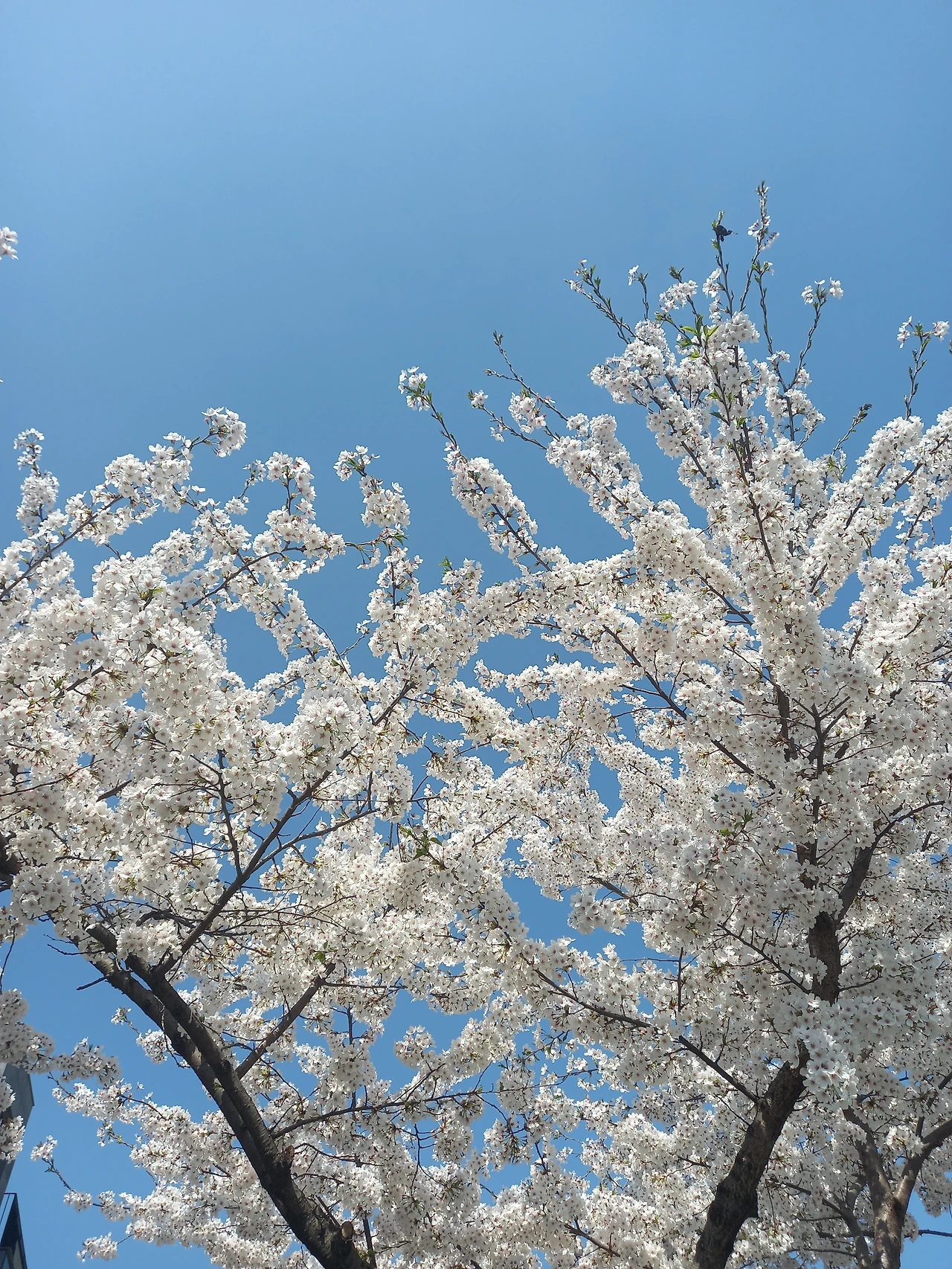 봄날에 하는 벚꽃구경은 항상 지나던 길가나 집 앞에 핀 꽃을 보며 감탄하는 일인지도 모르겠다. 주말을 맞은 아이들을 데리고 벚꽃을 다시 보러 갔다. 구름 없이 파란 하늘에서 우리가 걷는 내내 벚꽃 잎은 비처럼 쏟아졌다.