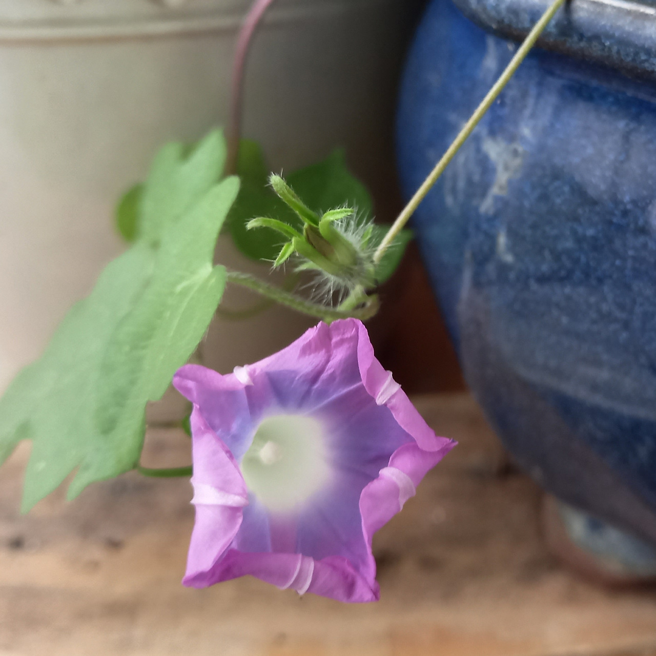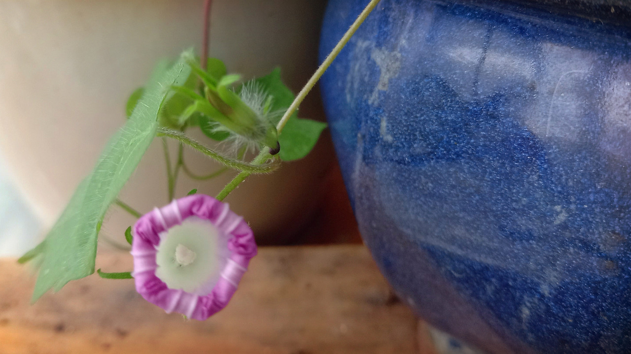 한송이 나팔꽃은 파란 화분에서 지난겨울 싹이 돋았다. 겨울 내내 거실에서 다른 화초들과 보낸 작은 모종은 봄이 되고 베란다로 옮겼지만 이파리가 6장 남짓 더 길어지지도 뻗어나가지도 않았다. 자연의 시계에 맞게 태어났다면 늦여름에 피기 시작해야 할 나팔꽃이었다.
