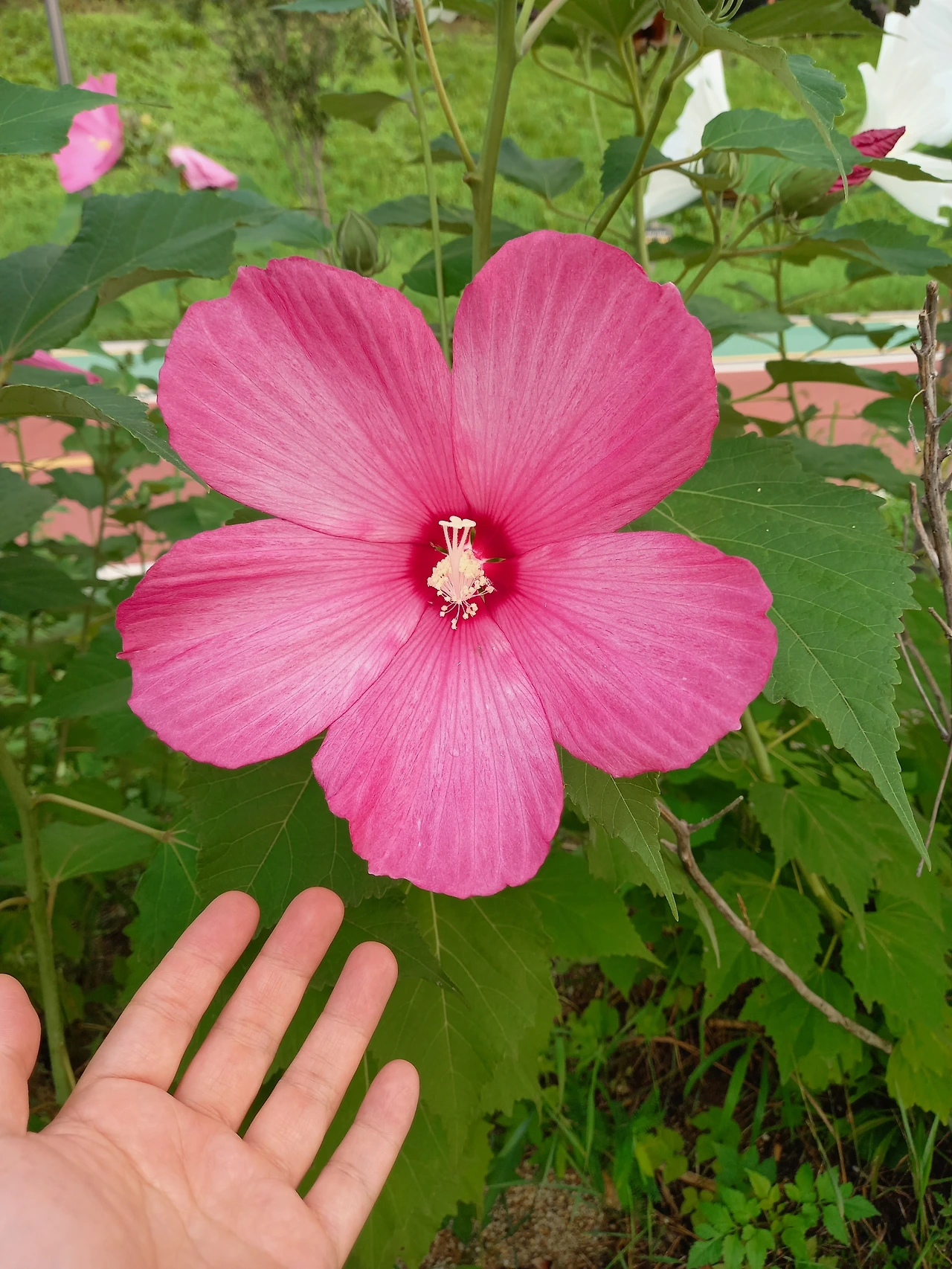 무궁화 같기도 하고, 접시꽃 같기도 하지만, 만개한 꽃송이는 대단했다.