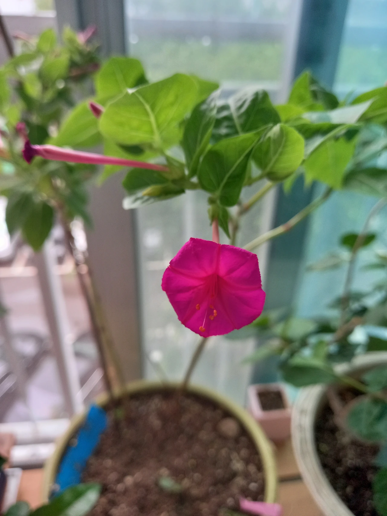 늦은 오후 아이들이 돌아왔고, 베란다 창가에 분꽃 한송이가 피었다.