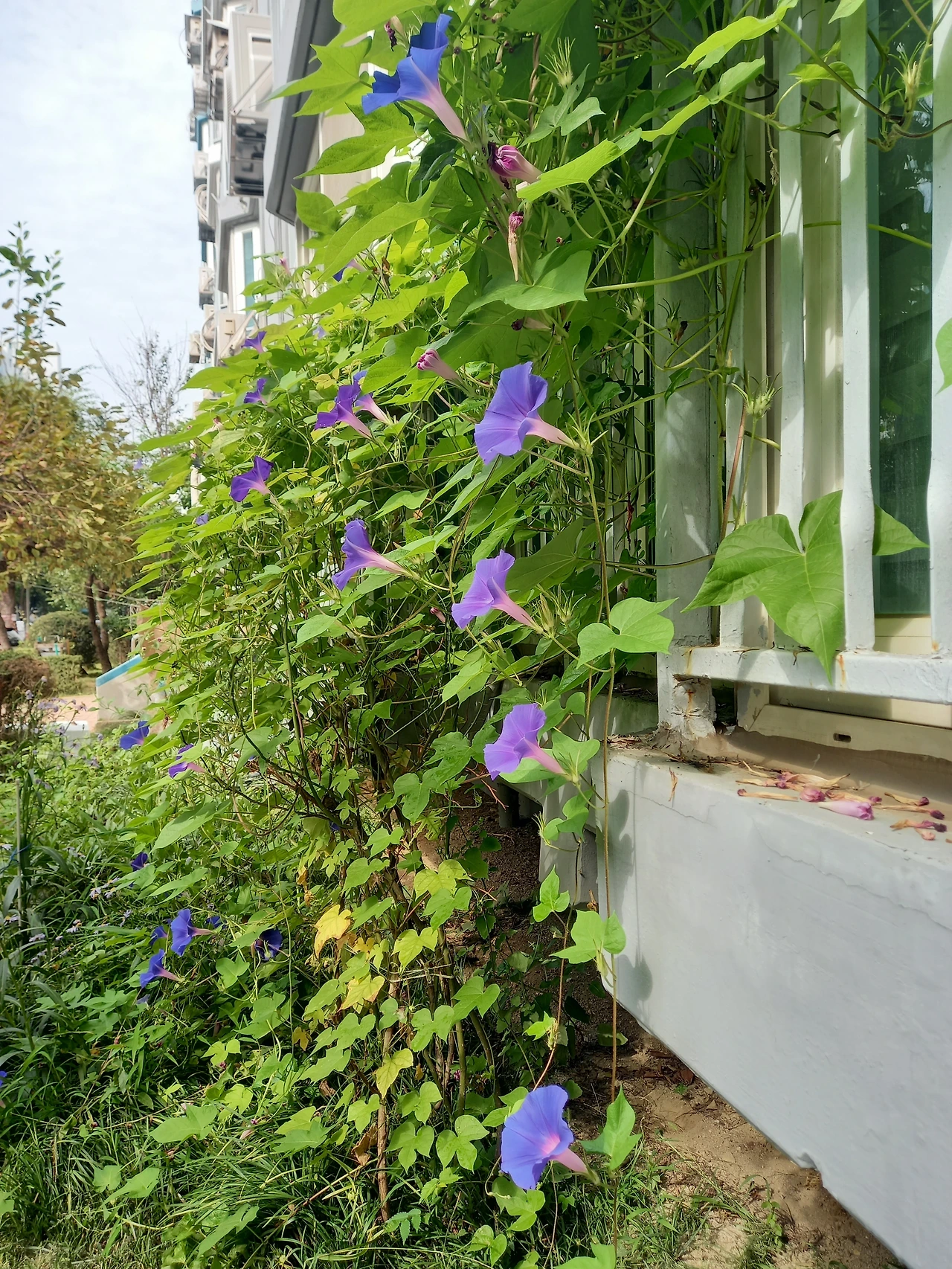 꽃이 피어 있는 곳을 발견하면 목적지가 정해진다. 요즘은 1층 화단에 피는 나팔꽃 덩굴과 개미취를 보고 나면, 곧장 집 뒤편에 있는 유치원 앞마당으로 향한다.