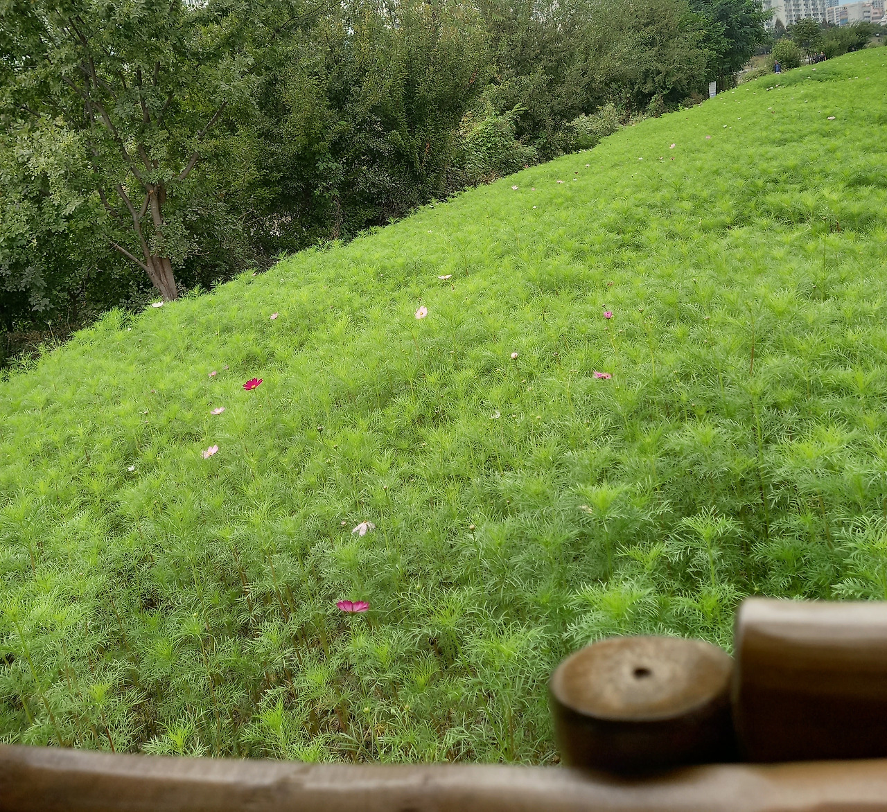 수변공원 꽃밭엔 초록으로 새로 돋아난 코스모스가 끝이 보이지 않을 정도였다. 그리고 작은 등처럼 켜진 꽃잎은 다른 계절이 시작했음을 알려주었다.
