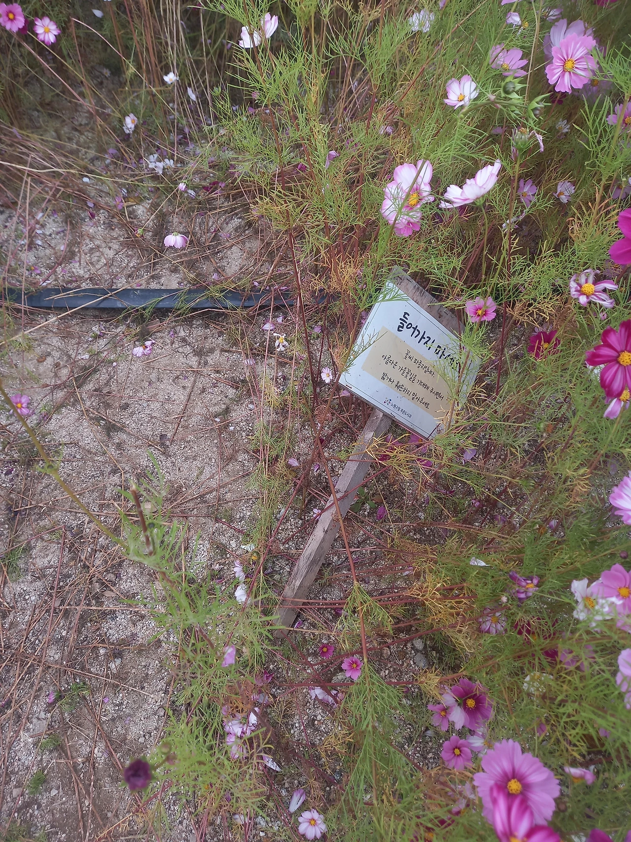 두통약 말고는 어떤 것도 효염이 없었는데, 꽃은 보고 싶었다. 매일 중랑천 코스모스길을 남편과 나서긴 했는데, 꼬박 3일 내가 두통을 앓는 동안 꽃밭도 쑥대밭이 되고 있는 중이다.