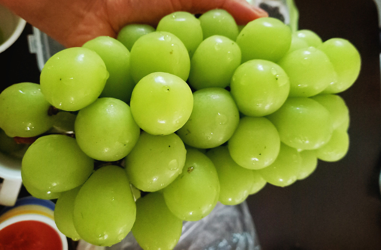 장 보러 갔다가 물가는 올랐는데 작년 보다 가격이 저렴해진 샤인머스캣을 들고 왔다. 수년 전엔 한 송이가 삼만 원이었던 것 같았는데, 요즘은 만원에 3-4송이도 살 수 있다.