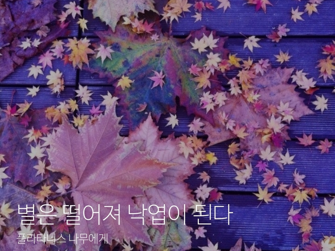시간을 갖는 것처럼 꼼짝하지 않고 내 몸을 만들고 글을 쓰고 있단다. 자꾸 창밖을 내다보며 나갈 생각이 들어 조바심이 나지만 기다려야겠지? 너희가 서 있는 길 위에 떨어진 낙엽을 밝으며 도서관을 오갔던 일이 그리워서 어느새 별은 떨어져 낙엽이 되었구나.