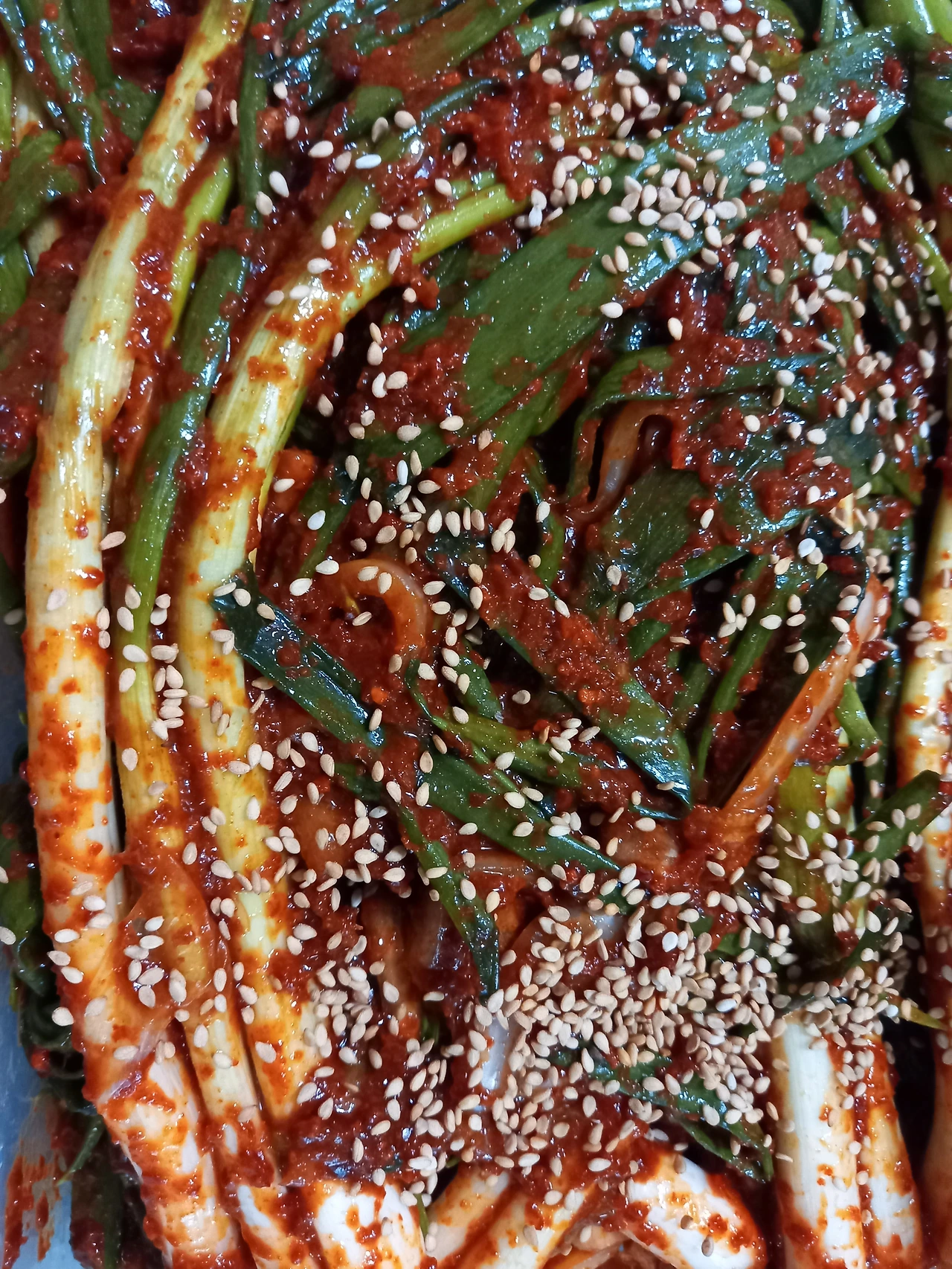 점심을 먹고 나서 다시 김치를 버무릴 준비를 했다. 참쌀 풀을 쑤고, 고춧가루와 속 재료를 넣어 양념을 만들었다. 파김치를 통에 가지런히 넣고 시계를 보니 저녁시간이었다. 하루를 쪽파 한 단과 씨름했지만 아직까지 파김치를 사 먹을 계획은 없다. 부엌에서 시간을 보내는 일이 위로가 되는 날이 꼭 있기 때문이다.