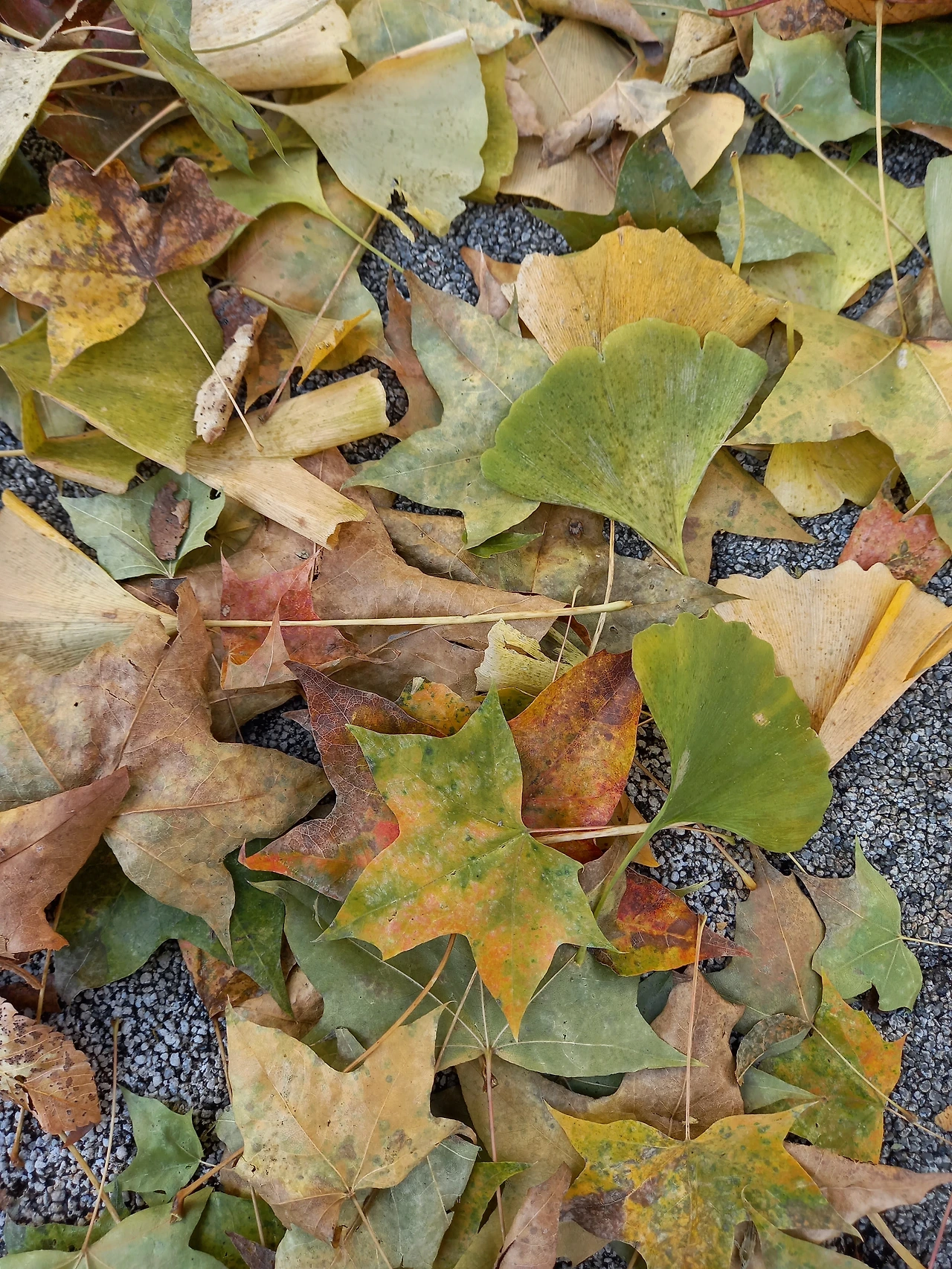 노랗지도 붉지도 않은 겨자와 고추냉이를 섞은 듯 뭔가 아닌 색들이 낙엽이 되었다.