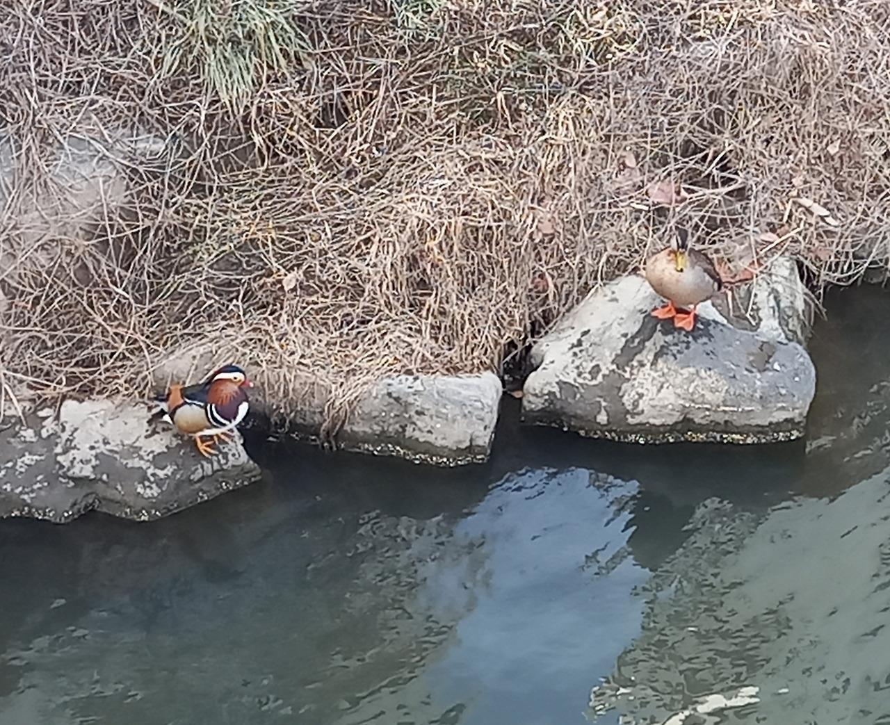 중랑천 철새들 중에 유난히 붙어 다니는 한쌍의 원앙을 보았다. 산책을 갈 때마다 만났는데, 전 날에 보았던 한쌍과 같은 원앙이었는지는 확인할 주 없었지만 꼭 붙어 다니는 원앙을 며칠 씩 보며 즐거웠다.