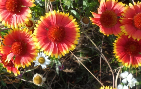 좀 더 걸어가니 천인국 꽃밭이 보이는구나. 이글거리는 태양을 꼭 닮은 넌, 나를 사로잡는 강렬한 꽃이란다. 꽃술은 보송보송 붉은 솜털을 하고 붉은 꽃잎이 가장자리만 노란색을 하고 동그랗게 피어난단다. 가끔씩 가는 꽃잎의 노란 바깥 테두리가 겹겹이 펼쳐져서 아주 섬세한 꽃도 섞여있는데 수레국화를 닮는 모습이기도 하단다. 난 밝은 태양을 닮은 너의 강렬한 모습이 좋아. 너의 꽃잎은 아침 햇살에 빛을 내며 눈이 부시는구나.