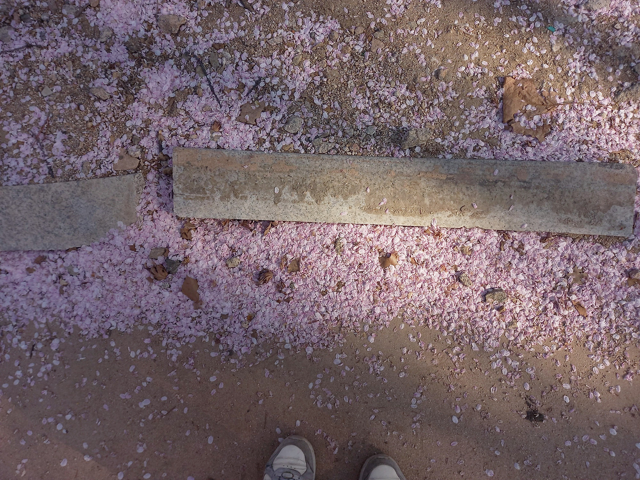 벚꽃나무는 꽃을 피우느라 참았던 갈증을 한꺼번에 채우는 것일까? 비가 떨어뜨리는 꽃잎을 보는 마음은 아쉽지만, 나무는 꽃잎을 바닥으로 삽시간에 던져 버렸다. 가 났다. 구를 원망해야 할지 이유도 모르겠고, 누구에게 화를 내야 할 지도 헷갈려하는 내가 이상했다. 무엇이었을까? 그러다 꽃비가 남겨준 풍경 안에서 아무에게도 말하지 못한 나의 감정을 알게 되었다.