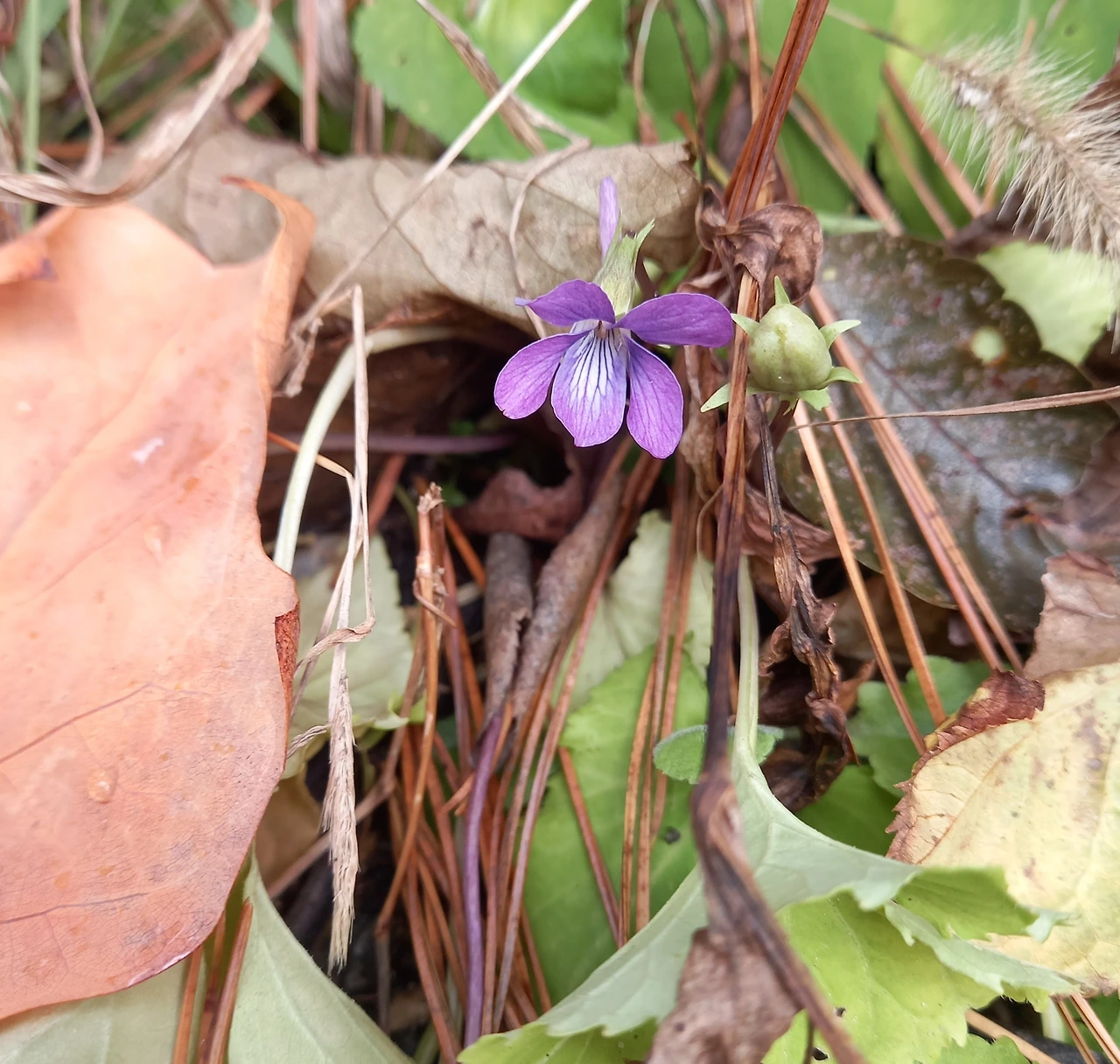 가을날이 끝난 11월 말에 만난 지금의 제비꽃은 겨울 제비꽃이라고 불러야 할 정도였다. 가느다란 선들이 무늬로 새겨진 보라색 꽃잎은 완벽하게 펼쳐진 채로 꽃은 피어있었다.