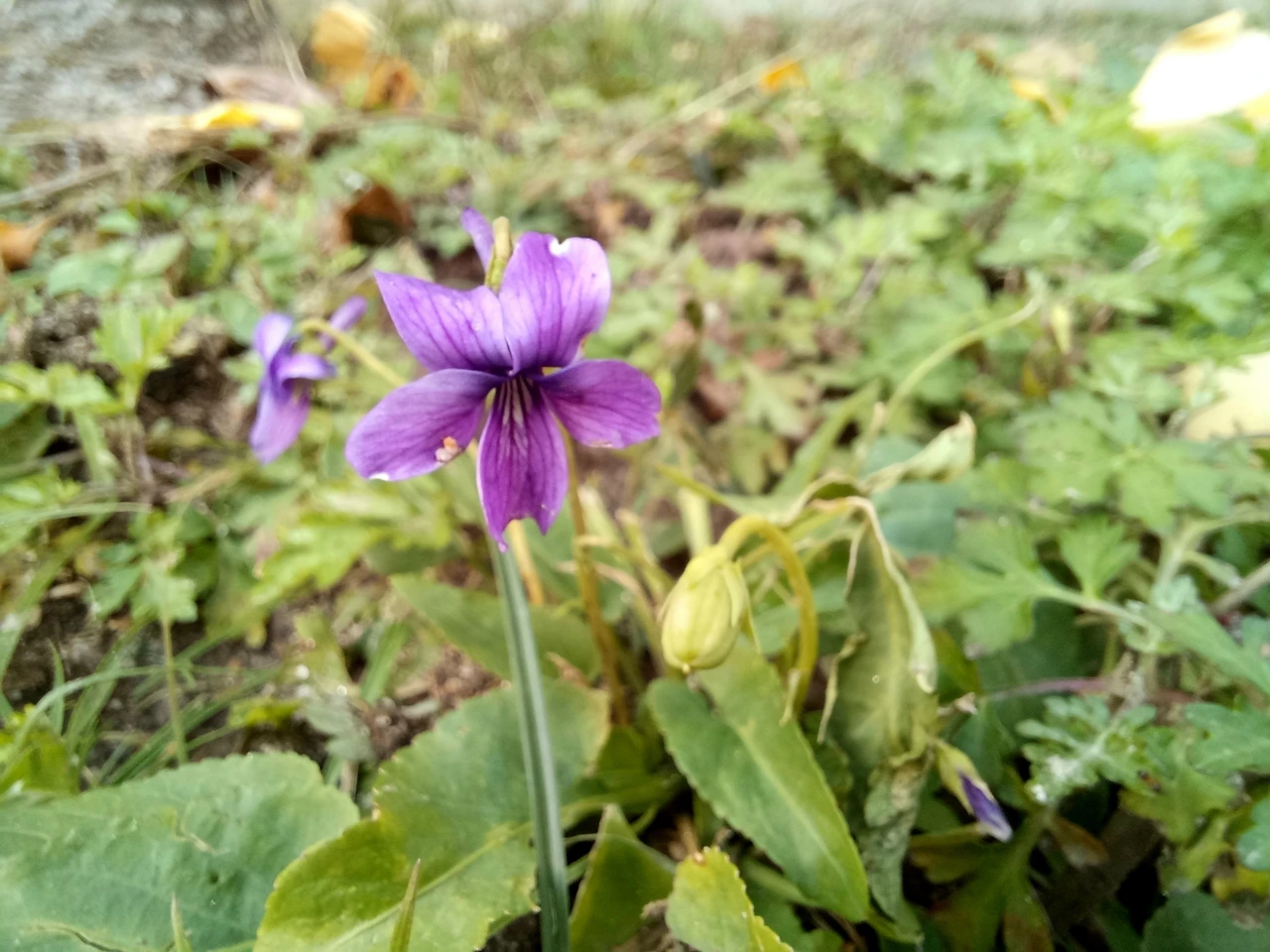 좀 더 기다리면 하얗게 내릴 듯도 했지만 눈은 가루처럼 날리다가 더는 보이지 않았다. 갈 곳이 있었다. 어제 아침 산책길에 보았던 제비꽃을 만나러 가야 했다. 양지바른 곳은 아니었지만 제비꽃 한송이를 연달아 만났다. 화단 깊숙한 곳에서 한 송이, 낙엽더미 아래서 한 송이였다.
