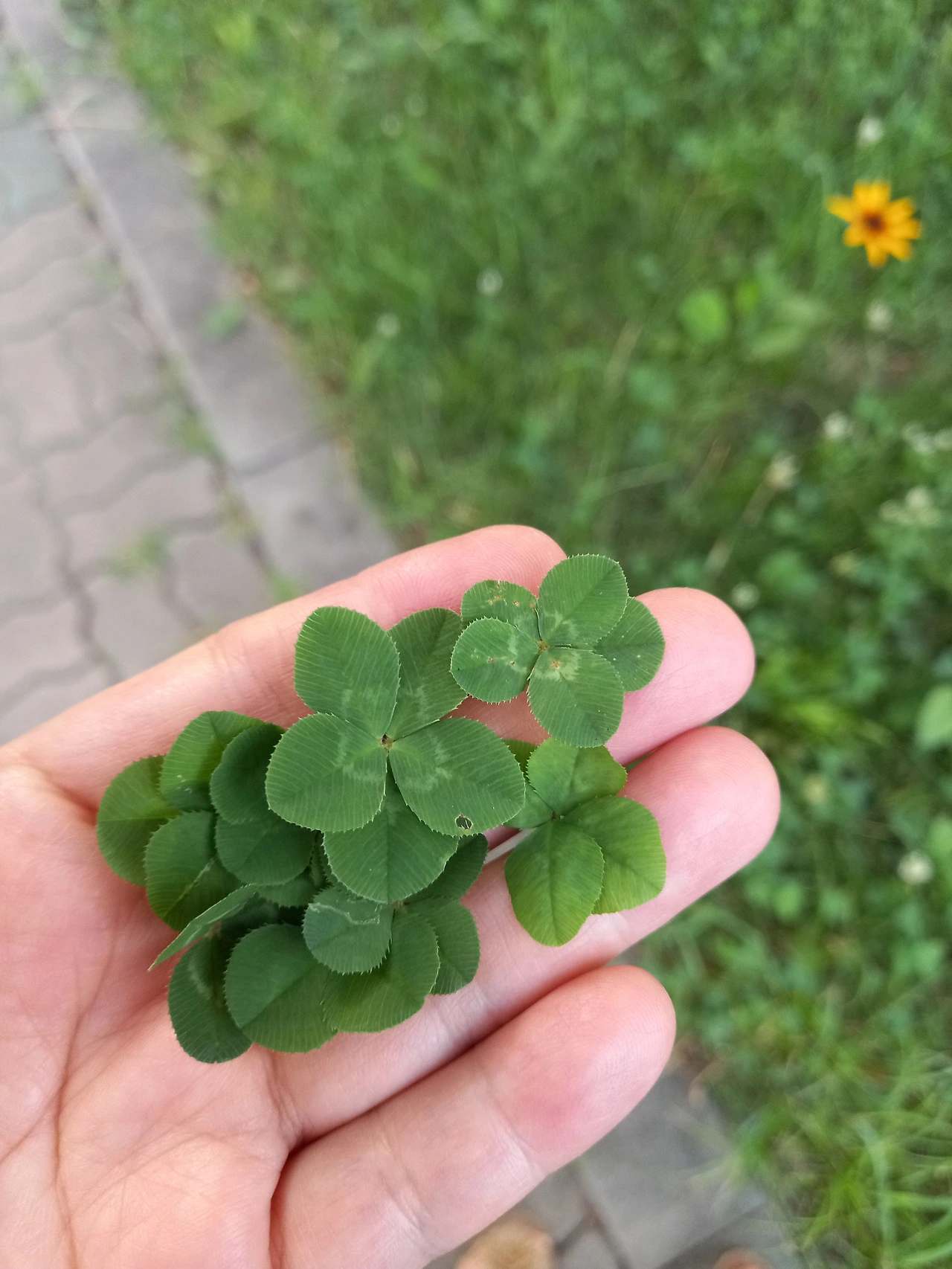 살랑거리는 새벽의 찬공기에 더 싱그러워 보이는 토끼풀 덤불 속에서 네 잎 클로버를 찾았다. 그리고 또 하나 더, 그리고 또 하나 같은 자리에서 찾은 네 잎은 손바닥 위에 수북해졌다. 풀들이 잘려나가기 전에 네 잎 클로버를 찾은 기분은 좋았지만 아쉽기도 했다.