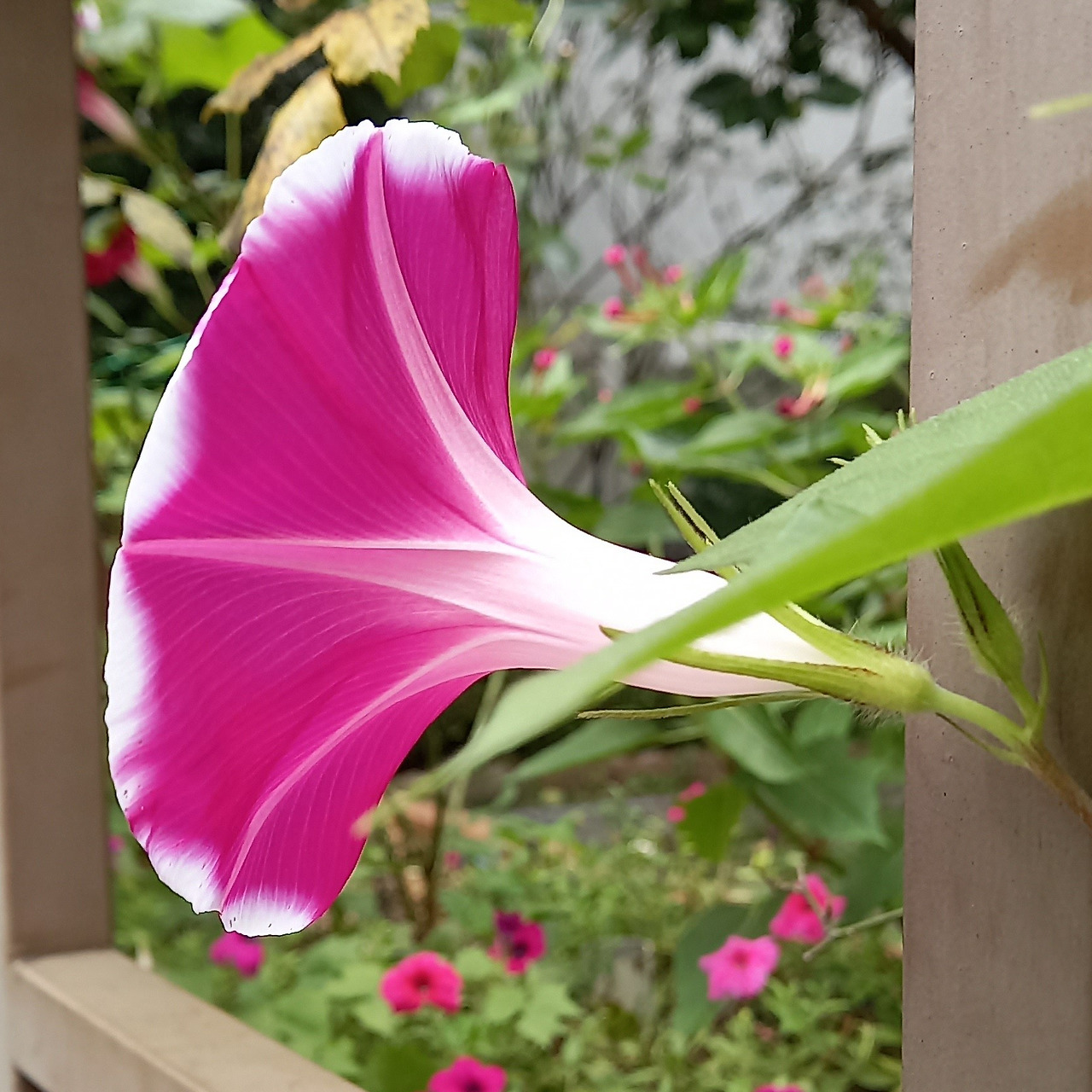 나팔꽃은 매일 아침 새로운 꽃이 핀다. 집 근처 화단에 테두리를 하얗게 두른 플레어스커트처럼 통이 넓은 나팔꽃이 피었다. 진한 분홍색도 곱지만 큰 꽃이라 더 눈길이 갔다. 매일 손질해 주는 손이 있어서 인지 흠잡을 때가 없는 나팔꽃 덩굴이었다.