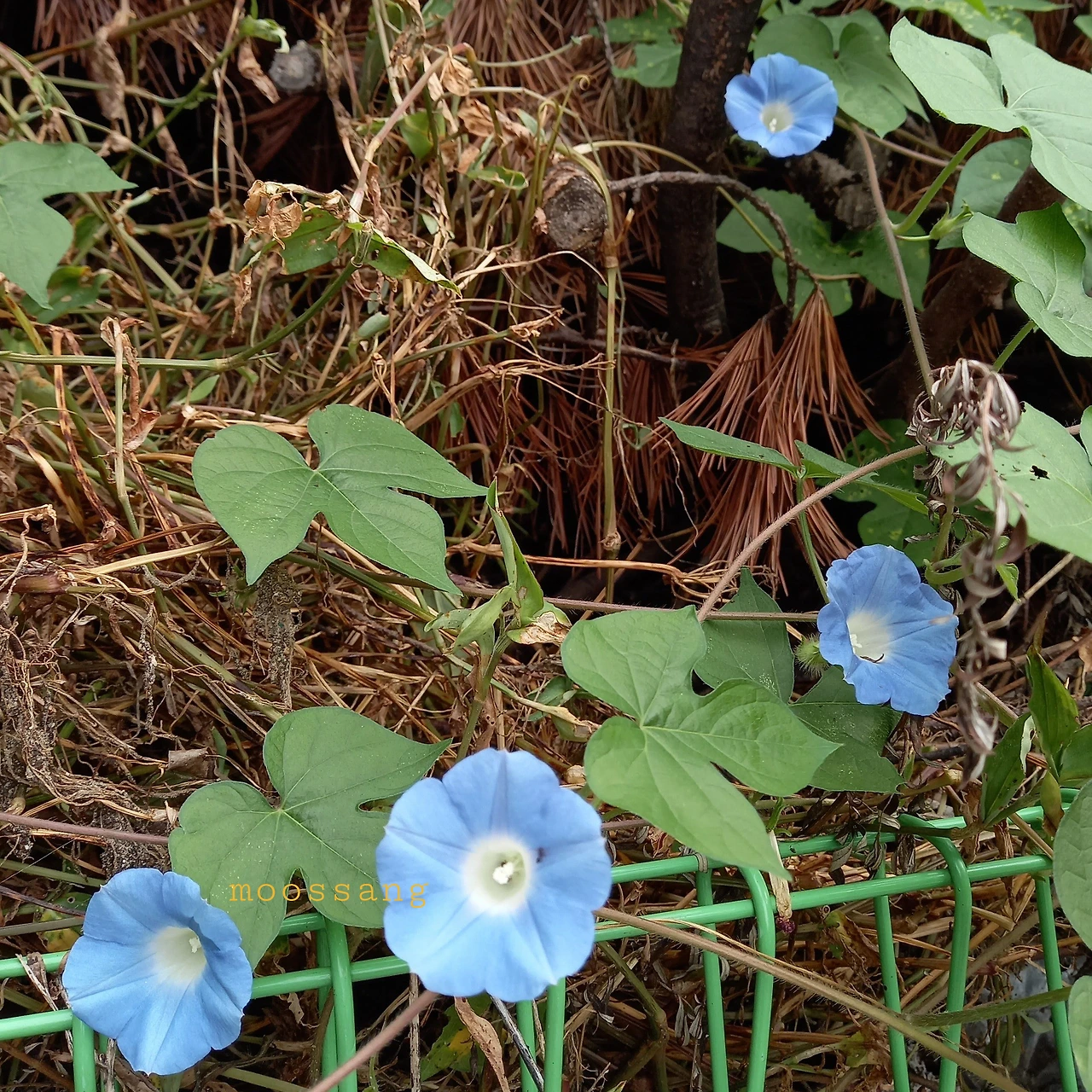 나팔꽃이 피는 곳은 그다지 깨끗한 공간은 아니다. 길가에 공터처럼 버려진 곳, 쓰레기 투기가 빈번한 빈 땅, 손보는 사람 없이 아무렇게 자라는 나무를 타고 자란다. 전깃줄을 사이에 두고 커튼처럼 늘어진 모습과 본 적도 있다. 덩굴 식물은 손에 닿지 않은 높은 곳까지 곡예를 부리니 구경하는 것 만으로 아슬아슬하기도 했다.