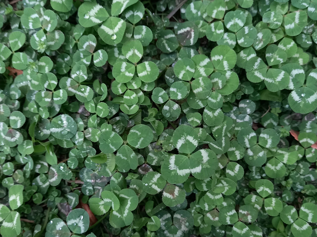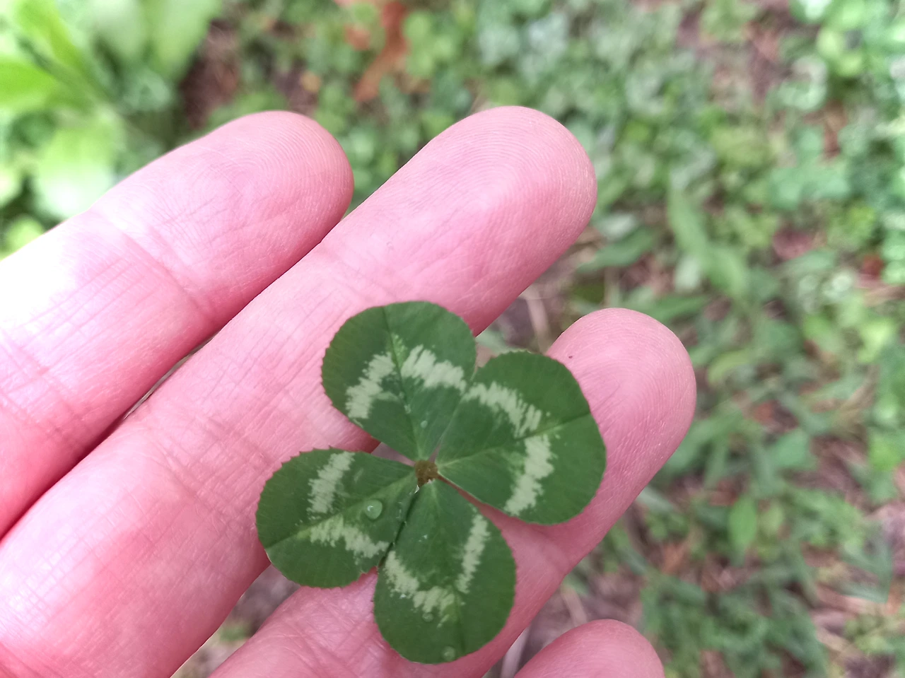 뒤죽박죽 젖은 야생초 사이, 네 잎 클로버였다.