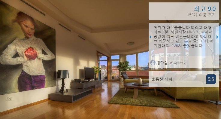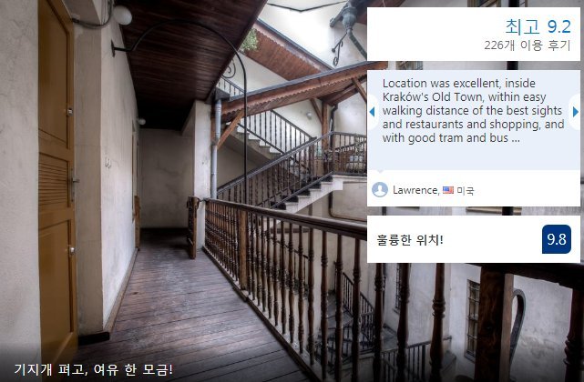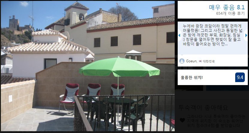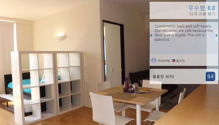 - 혹시나 하는 마음에 고객 Review나 평점의 경우, 약 8점 정도 (Booking.com 기준)면 O.K이다.