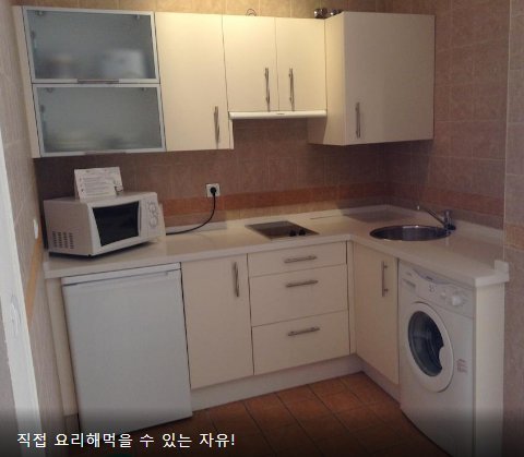 나는 이런 숙소를 체크인할 때에, 제일 먼저 슈퍼마켓의 위치를 물어서, 첫 끼를 해결할 야채와 과일, 약간의 고기와 물, 그리고 저녁에 마실 맥주와 안주 거리를 포함한 음식을 사 오곤 했다. 더불어, 이런 곳에는 주택과 같이 큰 냉장고도 있어서, 음료와 음식 보관도 매우 편하며, 모든 식기까지 있기에 매우 편하다.