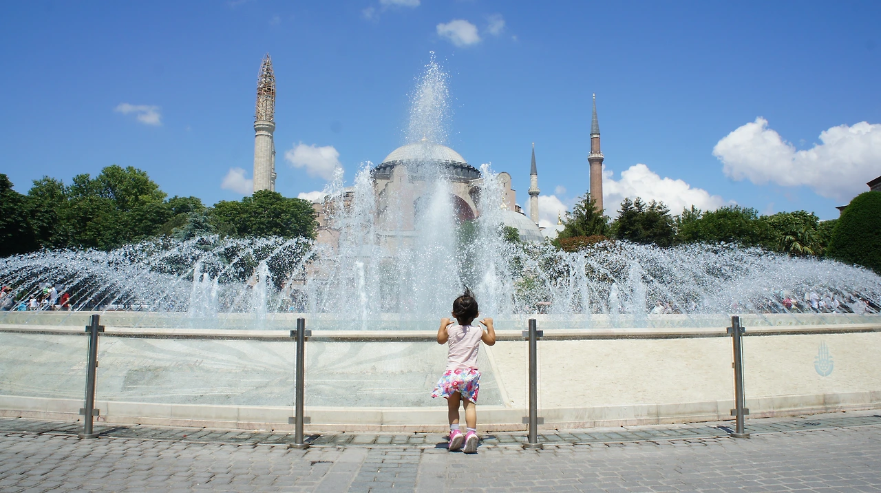 너무 더웠던 찰나에 물을 보고 신난 아이. 그러나, 다후야...이 곳 '지혜의 대성당'은 4C에 만들어진 비잔틴미술최고 걸작이자, 네가 가 본 바티칸 성 베드로 성당이 지어지기 전까지 세계 최대의 성당이었단 말이다...