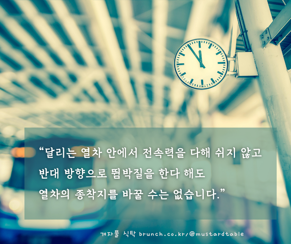 종착역을 바꾸려는 노력과 맞바꾼 내 삶의 가치와 기회들을 잃지 않을 수 있습니다.