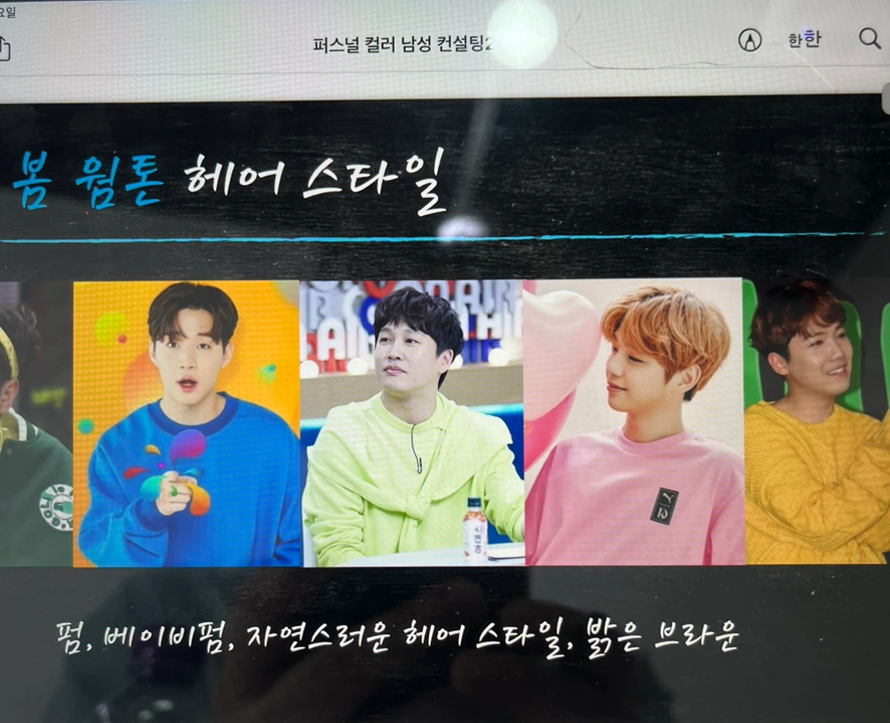 '나혼산'에도 출연했다는 강남의 컨설턴트와 상담을 예약하고 지인들과 같이 방문하기로 했다. 오우 그런데 이게 비용이 좀 나갔다. 10만 원이 언저리였는데... 그런데 또 점 보러 가서 내는 복채를 생각하니... 아 이 정도 하겠구나 싶기도 했다. 어쨌든 3명이 가서 30만 원이 조금 못되게 비용을 지불했다. 그리고 컨설팅이 시작됐다. '봄 웜톤'이라는 결과가 나왔다. 그러면서 헤어스타일 추천이 바로 들어왔는데... 그나마 차태현이 좀 비벼볼 만한 언덕일까?
