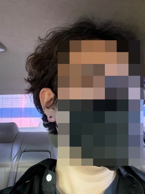 이번엔 피어싱이다. 한쪽 귀에는 한 개, 다른 쪽에는 두 개를 하려고 시도한다. 병원에서 아무렇지 않게 주사를 맞고, 피검사할 때 팔뚝에 주삿바늘을 찌를 때도 아무렇지도 않게 바라보고 있는데, 귀를 뚫는다니… 식은땀이 폭발했다. 시술해 주는 점원이 무섭냐고 물어본다. 몸을 떨고 있다고 한다. 앗! 심호흡을 한번 길게 하고 해달라고 기합을 넣었다. 쑤욱 귓불로 뭔가가 관통했다. 기분이 요상하다. 좋은 기분은 아니다. 어쨌든 피어싱도 성공! 변신 완성 사진이다.