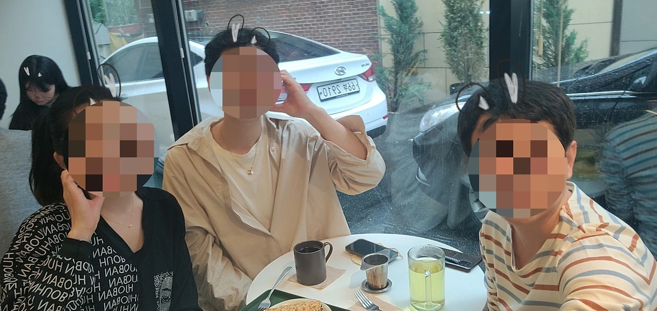 사진이 저장된 폰 주인이 본인 얼굴이 크게 찍힌 것은 다 지우고, 남은 사진에 고양이 귀, 토끼 귀도 그려 넣고, 하트도 그려 넣은 후 보여줬다. 보자마자 든 생각은... '사진 속에 저분들은 뉘신지~?' 폰 주인에게 항의했다. 이건 내가 아니라고 무슨 이런 요사스러운 사진이 다 있냐고... 자리를 옮겨가며 사진을 찍을 때마다 연신 사진 속에 저분들은 누구인지 물었다. 잔소리 말고 그냥 포즈나 취하란다. 반쯤 포기하고 결론 내렸다.