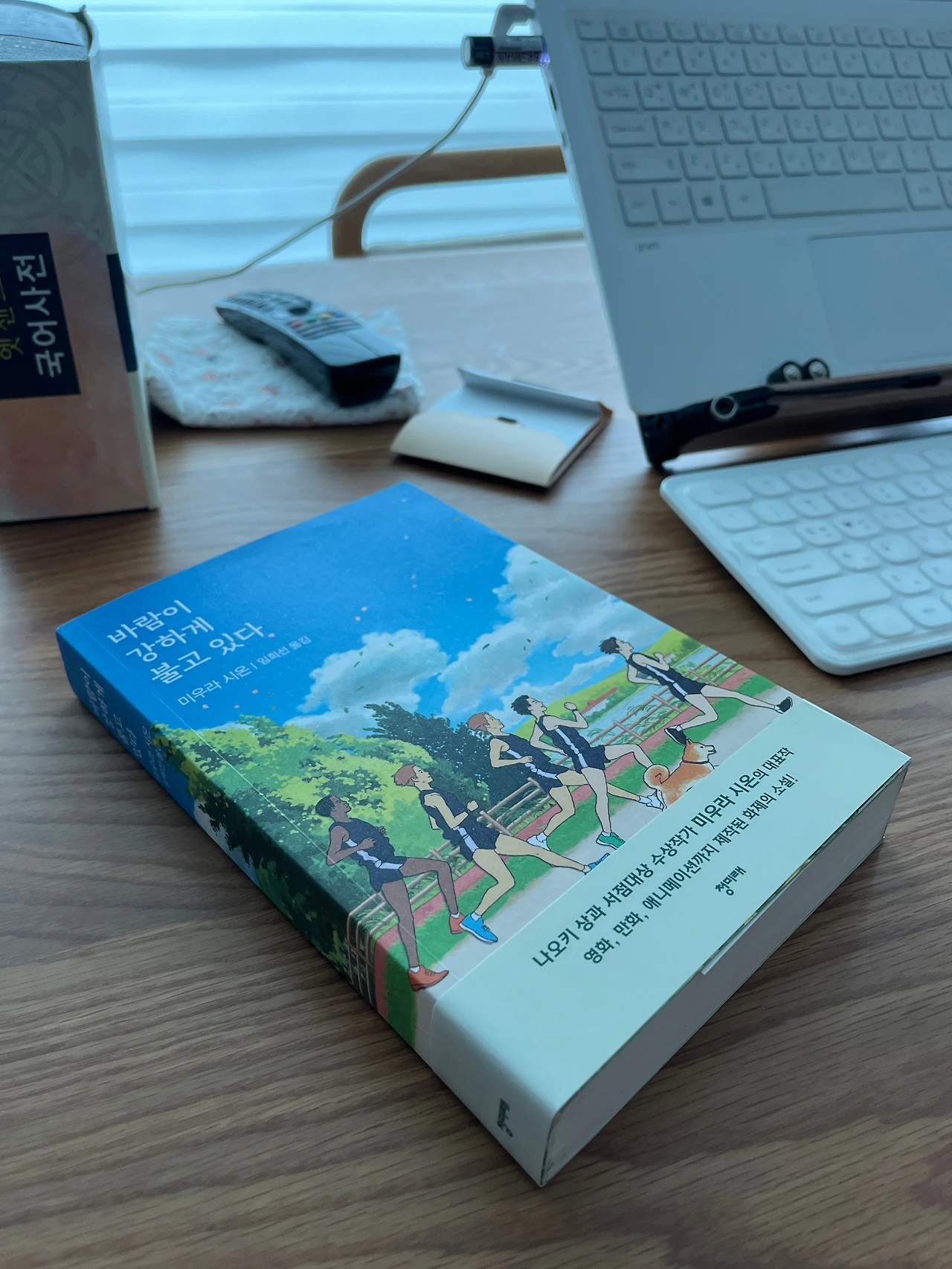 어! 그런데 어디서 본 듯한 이 장면... '뭐지? 뭐였지?' 똑같다고 할 수는 없지만, 이런 느낌? 생각?을 본 기억이 났습니다. 정확히 읽었던 기억이 났습니다. 제가 제일 좋아하는 일본 소설가, 미우라 시온作 <바람이 강하게 불고 있다>. 달리는 기분을 너무나 생생하게 묘사해서 읽는 내내 같이 달리고 있는 듯한 기분이 들었던... 게다가 '달린다'라는 의미를 다시 한번 일깨워 주었던 소설... 처음에 띠지를 여사로 보아 넘겼는데... 애니메이션으로도 제작이 됐었나 봅니다. 영화, 만화도 있는 듯하네요. 한번 찾아봐야겠습니다.