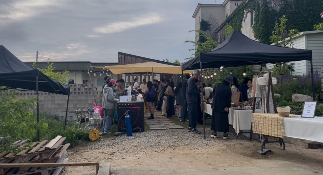 그러고 나서는 팀장님 친구를 만나러 간다. 처음 뵙는 분이었지만, 단번에 느껴지는 친근감과 매력은 나를 너무 설레게 했다. 우리는 함께 플리마켓을 구경하고, 어떤 카페의 빈티지 옷들도 구경하고, 민박집도 들렀다가 '무사'라는 주점에 도착한다. 그곳에서도 플리마켓이 한창이었고, 시골마을의 작은 파티처럼 사람들이 모여 앉아 맛있는 걸 먹으며 함께 대화를 하고 있었다.