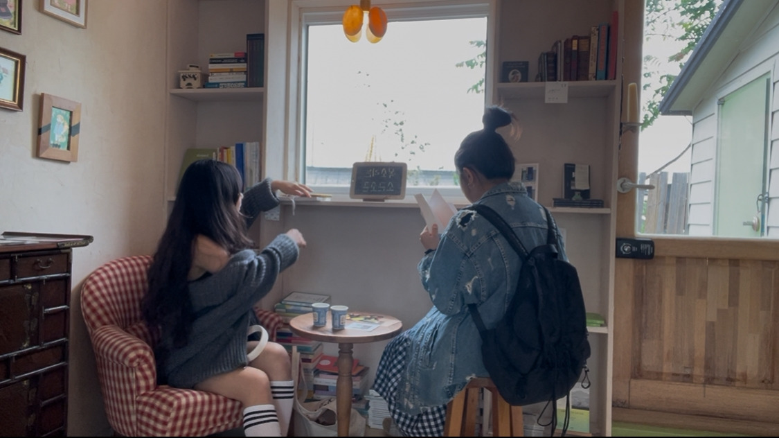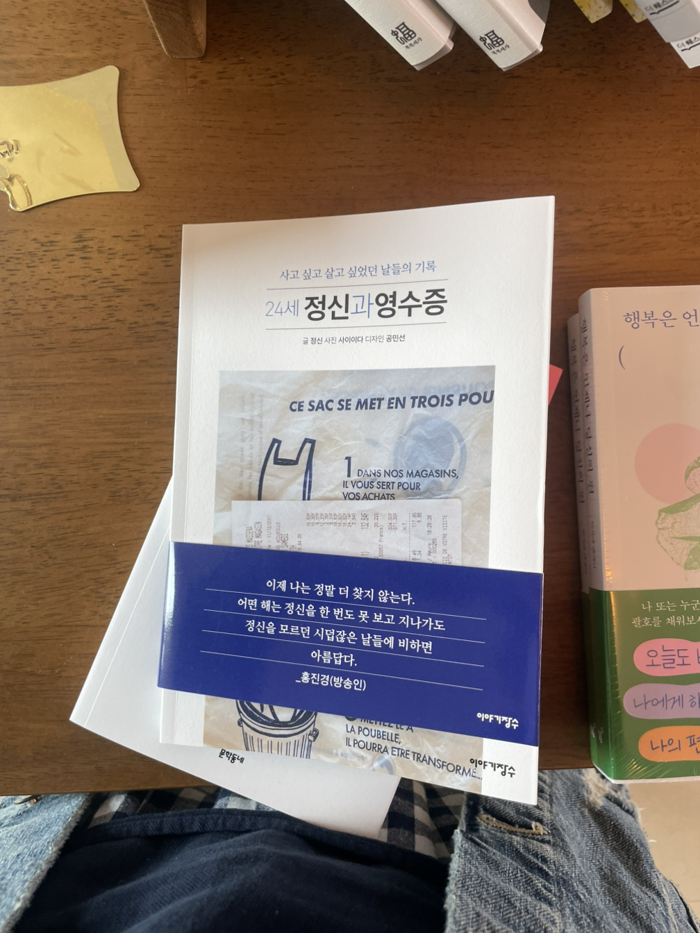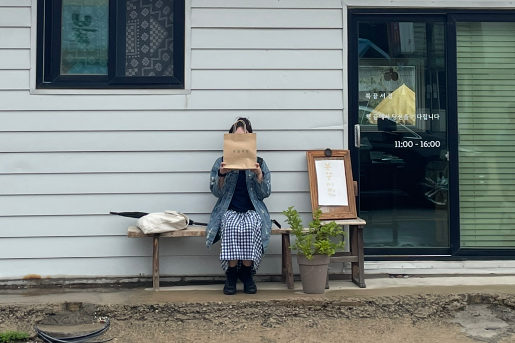 팀장님이 빈티지샵에서 구매한 자라 청자켓을 입었는데 나한테 너무 잘 어울리지 뭐야? (나중에 이 옷 나 주셨다) 아무튼 그렇게 입고 북끝서점에 갔다. 들어서자마자 따뜻한 분위기로 도배된 그곳에서 나는 책 하나하나 구경하며 온전히 그 시간에 빠져든다. 서점 주인의 취향이 곳곳에 깃들어 있어 그 취향을 구경하는 것만으로도 또 하나의 여행을 하는 기분이 들었다. 또 요즘 나의 관심사가 담긴 책 제목들을 지나칠 때면 빼먹지 않고 사진을 찍어둔다.