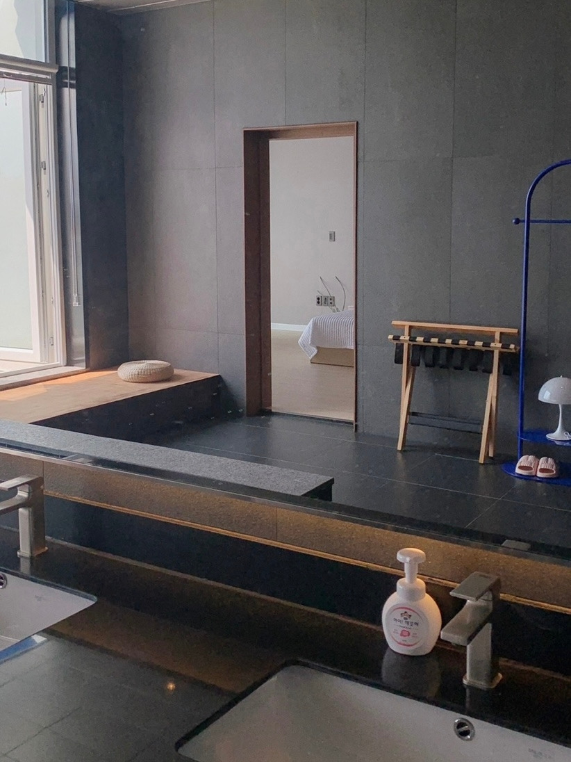 키가 엄청 크셔서 모델인 줄 알았던 사장님은, 사실 잠실 토박이지만 최근 고성에 귀촌해 숙박업을 운영하고 있다고 했다. 작고 프라이빗한 교암 해변에 대한 가득한 애정으로, 해변 1초 거리에 아주 멋진 숙소를 마련했다. 패션에 관심도 많으셔서 1층 작은 구역에 옷 장사도 하신다. 인테리어와 패션에 관심이 많은 나는 그분의 모습에 나를 겹쳐 상상해 본다. '훗날에 나도..?'