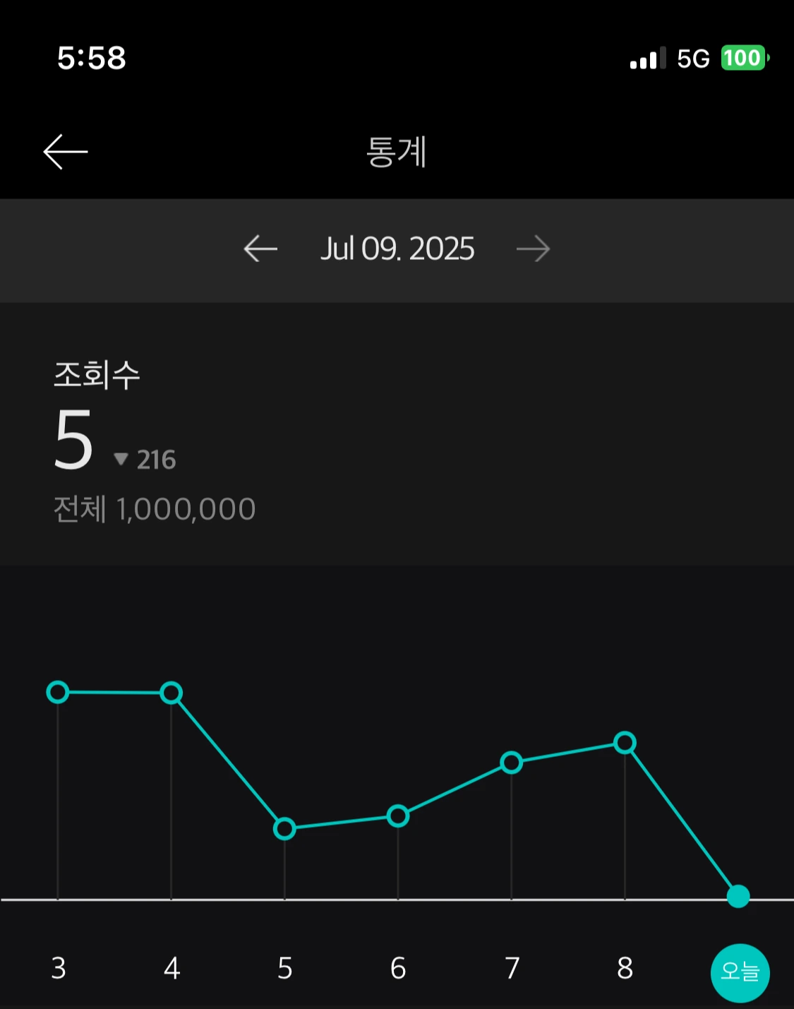 1백만이 찍히는 것을 보고 잠들고 싶었는데, 피곤했던 나는 그러지 못한 채 잠이 들어버렸다. 아침에 눈을 뜨자마자 브런치 앱부터 켰다. 과연...