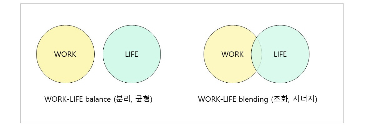 '워라블'이란 Work-Life Blending의 줄임말로, 일과 일상을 조화시키는 라이프스타일을 뜻한다. 먼저 등장한 '워라밸(Work-Life Balance, 일과 일상의 분리와 균형을 추구하는 라이프스타일)'과는 조금 다른 개념이다.